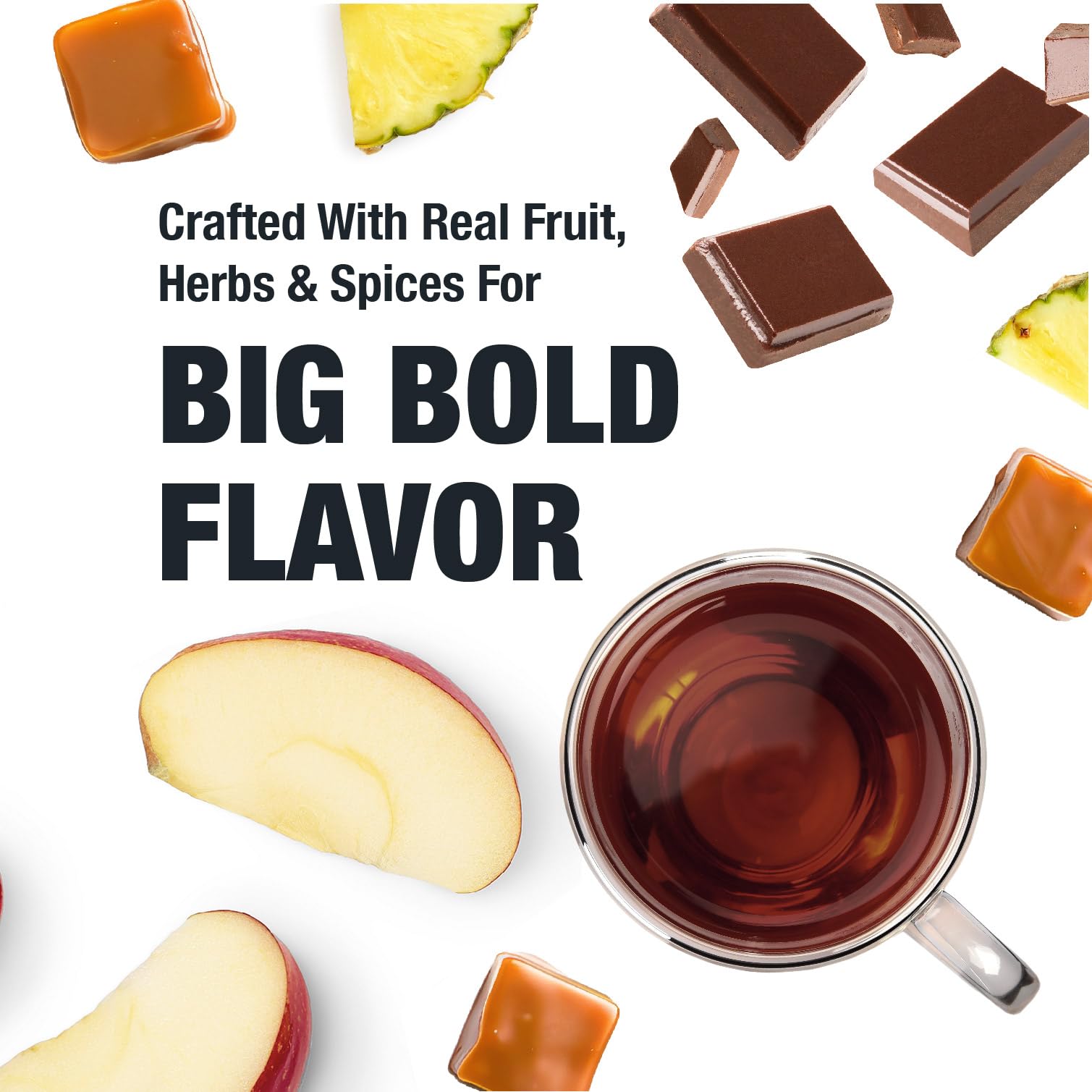 Q: What are the main ingredients in Tiesta Tea's Brownie Batter Herbal Tea?A: Tiesta Tea's Brownie Batter Herbal Tea is crafted from a delightful blend of natural ingredients, including sweet pineapple, rich cocoa shells, apple, caramel pieces, chicory root, cocoa nibs, and sweet blackberry leaves.