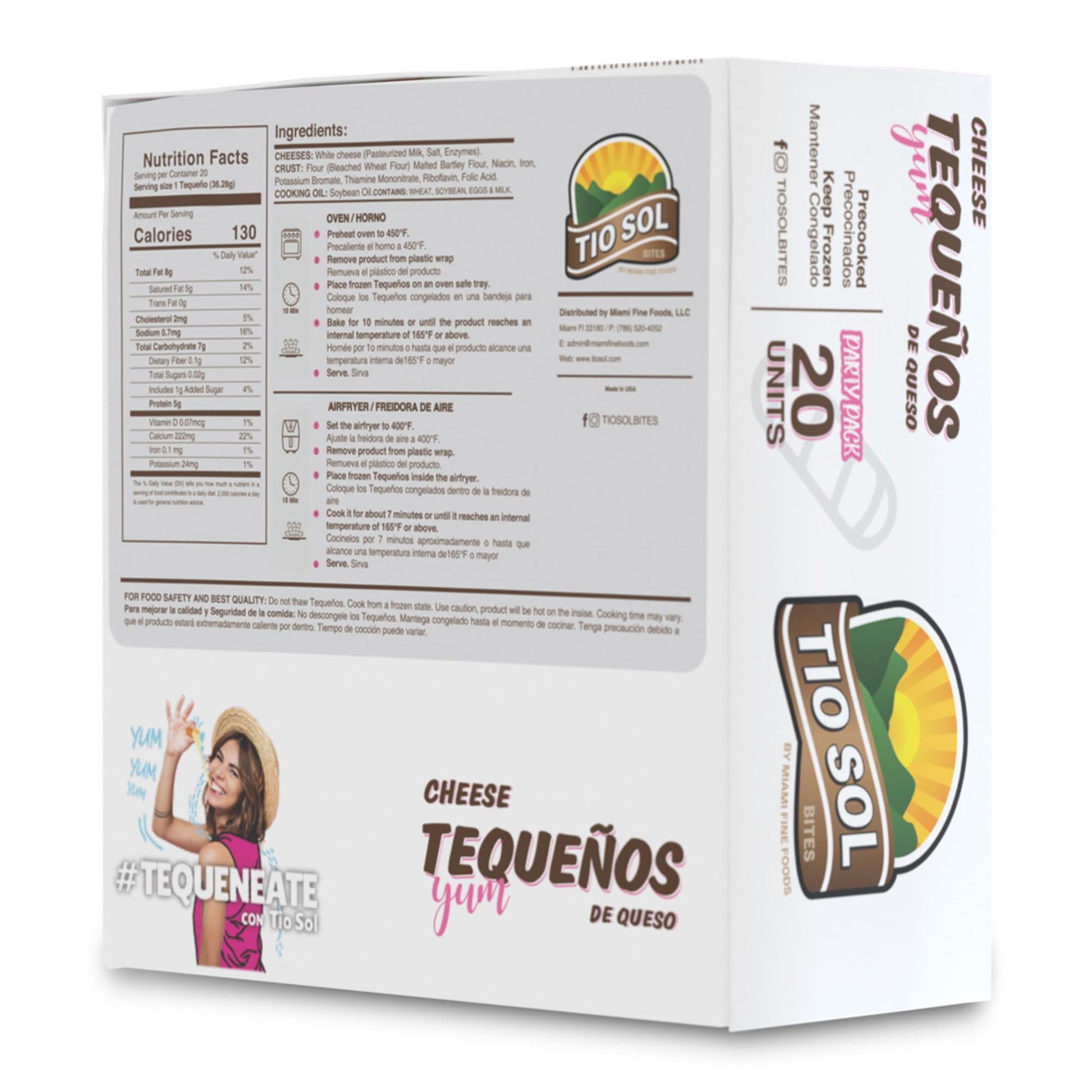 Tio Sol Bites Brings You A Delicious Snack From Latin America: The Traditional Tequeos, From Tio Sol Bites. 1.5 X 3 Sticks Of Baked Dough Filled With White Cheese That Just Melts In Your Mouth. Ideal As An Appetizer For You And Your Friends At Parties And Other Occasions. Available In Different Size Packs: 20 Units/40 Units/100 Units.Please Keep Frozen To Maintain Their Freshness And Good Cuality. Tio Sol Bites, Is A Brand Of Latinamerican Food Products Made And Distributed Exclusively By Miami Fine Foods. We Specialize In Typical Latinamerican Food, Where Traditions, Flavors And The Nostalgia Take Us Back To Good Times. Quality, Image And Service Are Our Priorities.