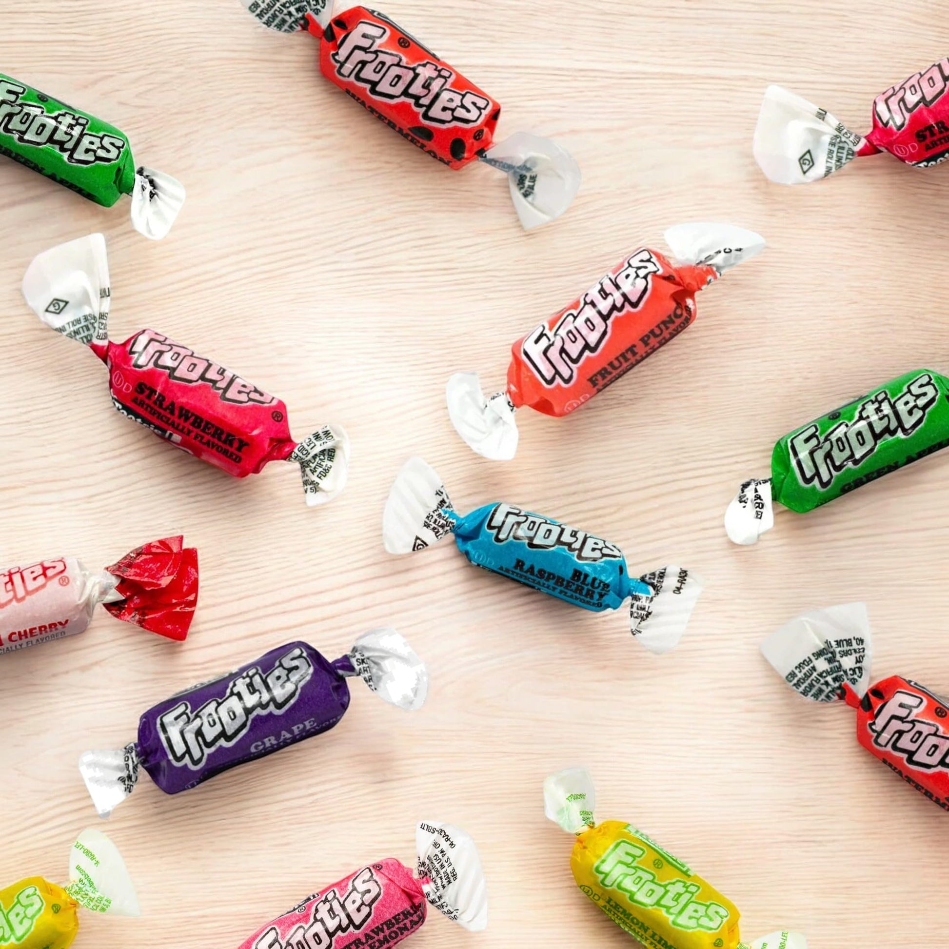Q: How should I store the Tootsie Frooties to maintain freshness?A: To maintain the freshness of Tootsie Frooties, store them in a cool, dry place away from direct sunlight. Each piece is individually wrapped, ensuring that they stay fresh until you are ready to enjoy them.
