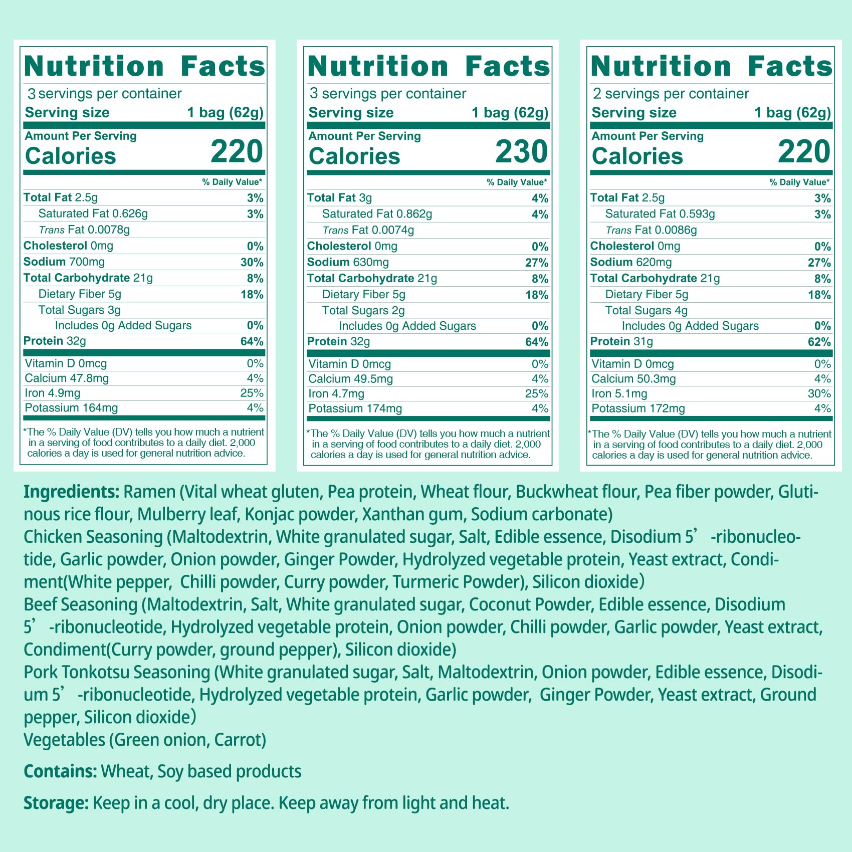 - Q: What are the main ingredients in VOLO VERO High Protein Instant Ramen? A: The main ingredients in VOLO VERO High Protein Instant Ramen include vital wheat gluten, pea protein, wheat flour, buckwheat flour, pea fiber powder, glutinous rice flour, mulberry leaf, konjac powder, xanthan gum, and sodium carbonate. This unique blend ensures a high protein content while being plant-based and free from artificial additives.