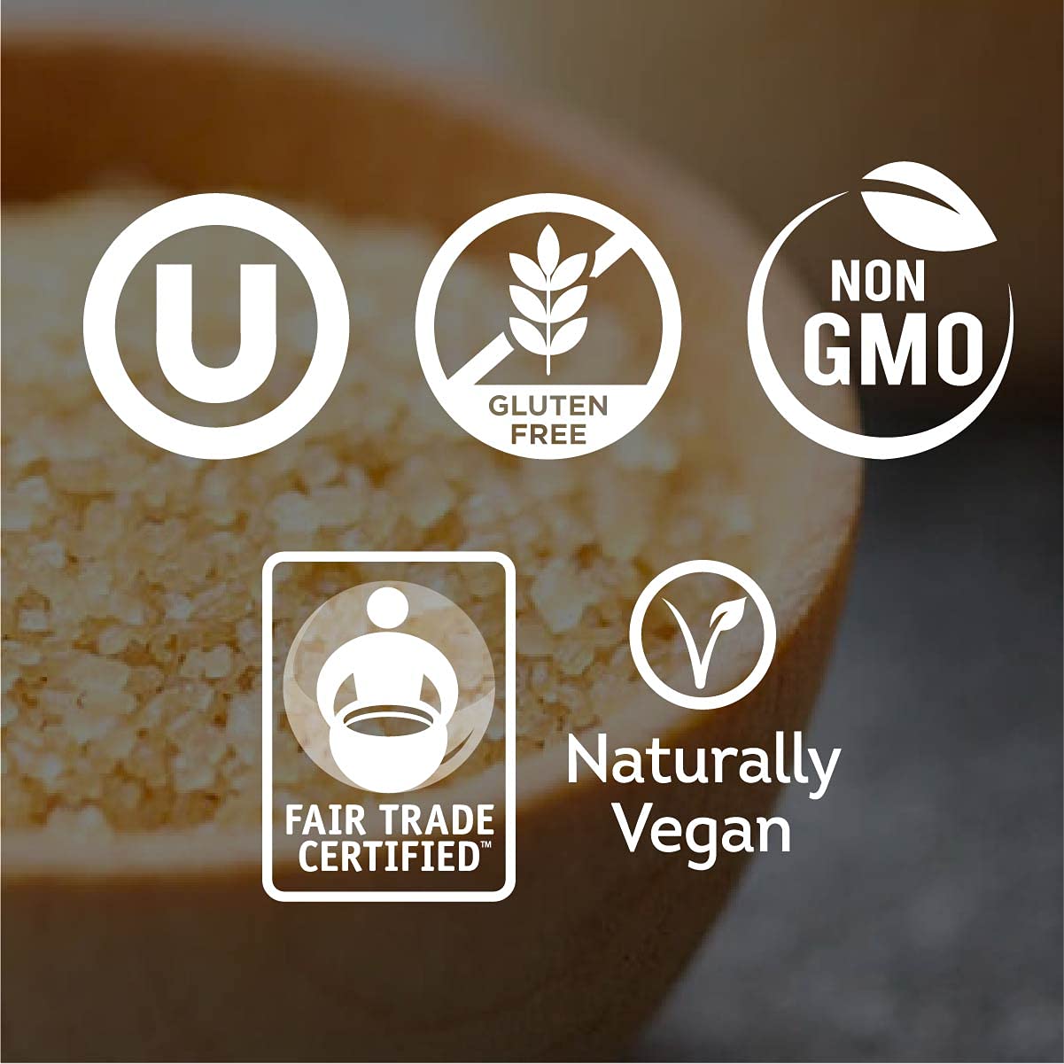 Q: Is Wholesome Sweeteners Raw Cane Sugar suitable for special diets?A: Yes, it is Fair Trade Certified, Non-GMO Project Verified, Kosher Certified, Gluten Free, and Vegan, making it suitable for a variety of dietary preferences.