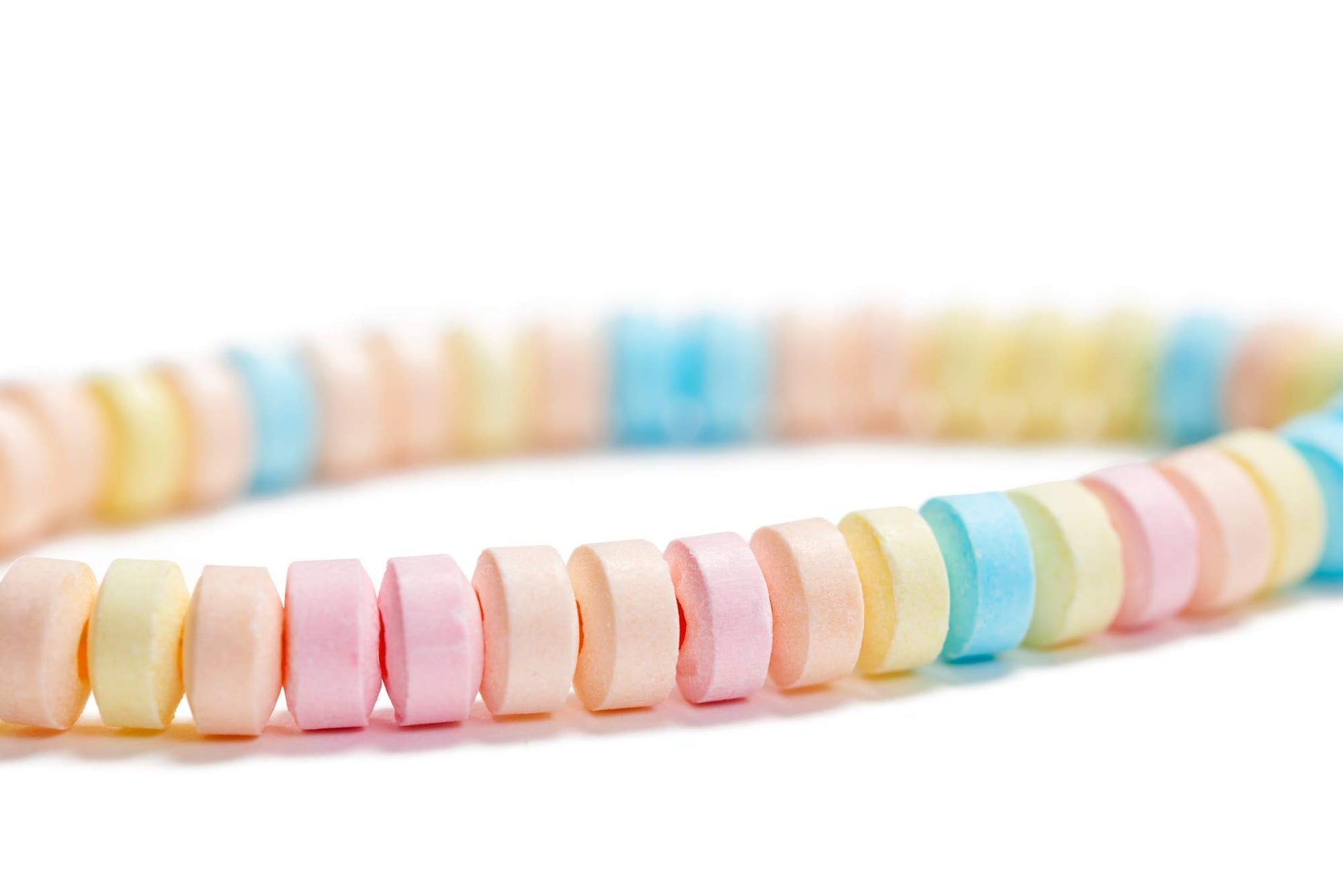Q: What are candy necklaces made of?A: Our candy necklaces are made from a variety of pastel-colored candies that are strung together to create a nostalgic jewelry piece. They are designed to be both a sweet treat and a playful accessory for kids.