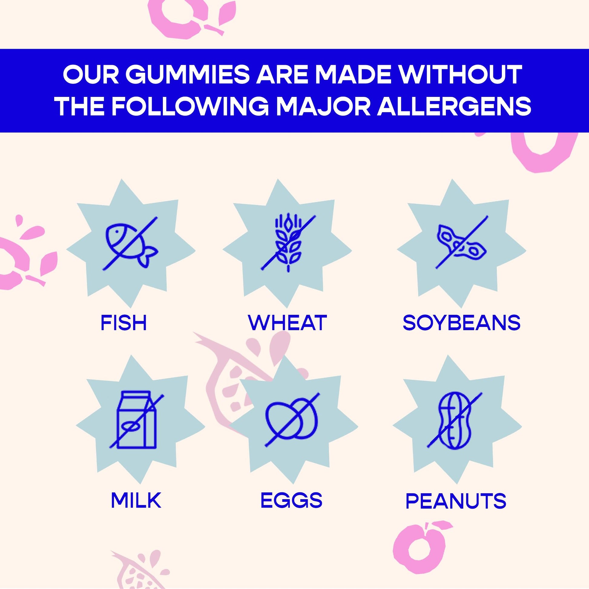 Q: Are Better Sour Gummies allergen-free?A: Absolutely! Better Sour Gummies are made without major allergens such as peanuts, wheat, soybeans, milk, eggs, fish, or shellfish, making them a safe choice for those with food sensitivities.