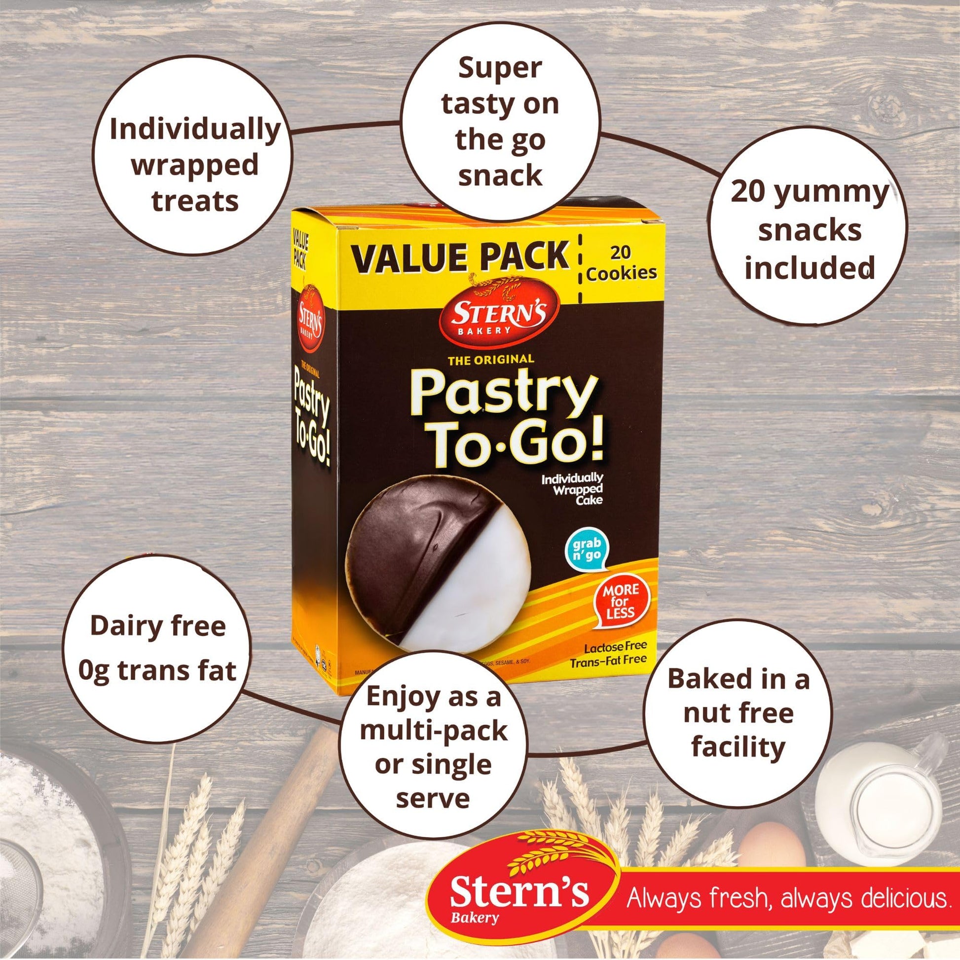 Stern'S Bakery Brings To You Our Full Line Of Pastry To Go Snack Cakes, Bringing On The Go Snacking To New Heights! We Have A Scrumptious, Mouthwatering Variety Of Flavors- Chocolate Swirl, Cinnamon Swirl, Black & White, Confetti Brownie, Choco N Cream, Chocolate Rugelach, Brownie Blast & Sprinkle Cookie! 12.5 Oz. Pick Your Favorite Flavor And Enjoy It With Friends And Family Or Just By Your Lonesome With Your Cup Of Coffee Or Tea! They Will Also Complement Any Birthday Or Holiday Party. You Will Have That Box Emptied In No Time! These Individually Wrapped Cookies Were Also Created With Your Kids In Mind, Stick Into Your Kid'S Lunchbox, And Be The Best Parent Ever!