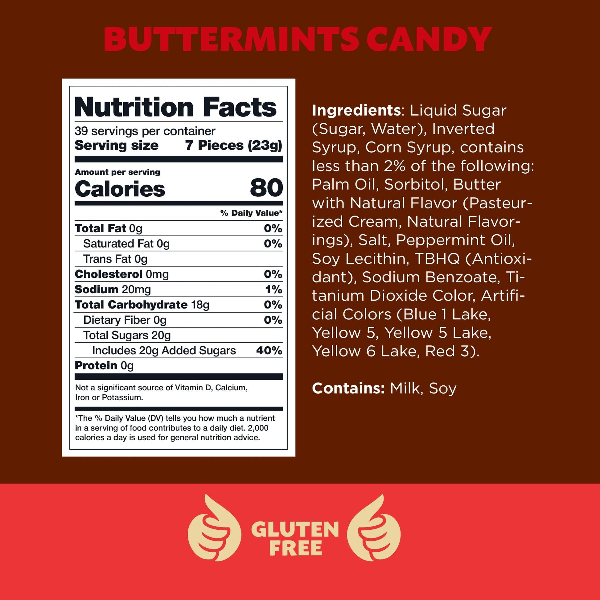 - Q: How many pieces are in a 2-pound pack of Buttermints Candy? A: Each 2-pound pack of Buttermints Candy contains approximately 270 pieces, making it perfect for sharing at events or keeping on hand for a sweet treat.