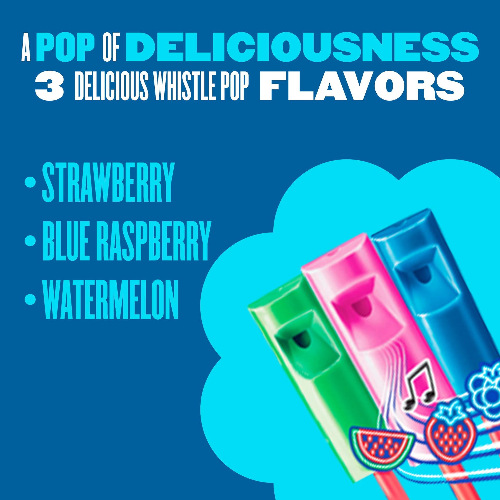Grab a lolly and make music with Chupa Chups Melody Pop lollipops! Each box contains 30 individually wrapped, Strawberry, Blue Raspberry and Watermelon flavored Melody Pops. Melody Pops are whistle lollipop candies that allows you to play different notes using a plastic lollipop stick that extends to change notes. Our delicious hard candy lollipops are individually wrapped for freshness. These tasty lollipop candies bring long lasting enjoyment to the young and old. The premium plastic lollipop stick won’t fall apart in your mouth so you can enjoy each flavorful lollipop sucker to the end. Designed for sharing, these candy suckers perfect for kids parties, showers, events, rewards, pinatas, holidays, parades and more. Created in 1958, bringing happiness to children of all ages, Chupa Chups combines tradition with contemporary creativity and innovation. Chupa Chups has conquered the taste, the mind and the heart of millions of consumers worldwide. Its personality and eye-catching colors inspire a Forever Fun style. Chupa Chups is the #2 lollipop brand worldwide.