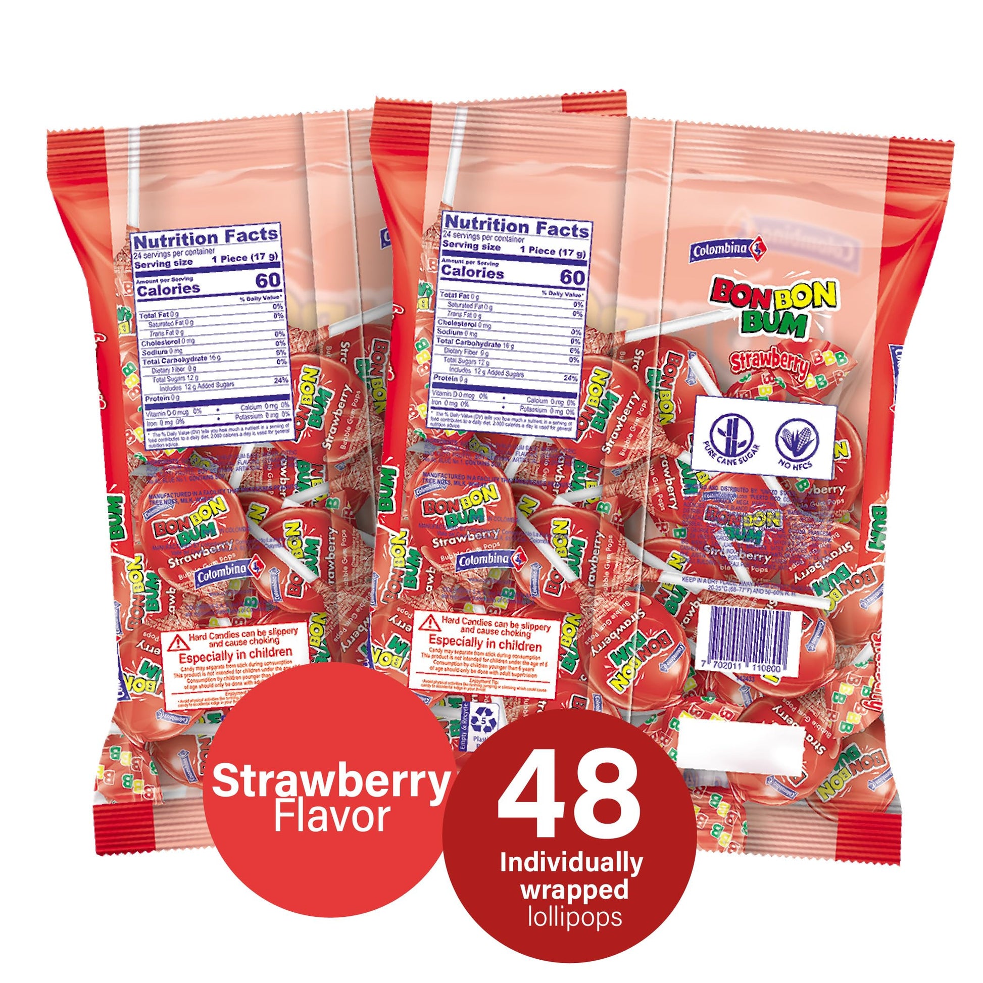 Q: What flavors are available for Colombina Bon Bon Bum Lollipops?A: The Colombina Bon Bon Bum Lollipops come in a delightful strawberry flavor, featuring a bubble gum center that adds an extra layer of fun.