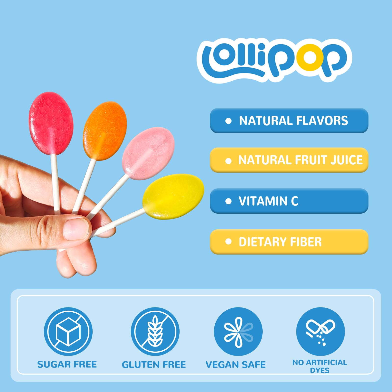 Q: Are these lollipops safe for children?A: Yes, DC24 DAILY CARE lollipops are designed to be safe for kids. They are gluten-free, non-GMO, and soy-free, and produced in a facility that adheres to strict safety standards.