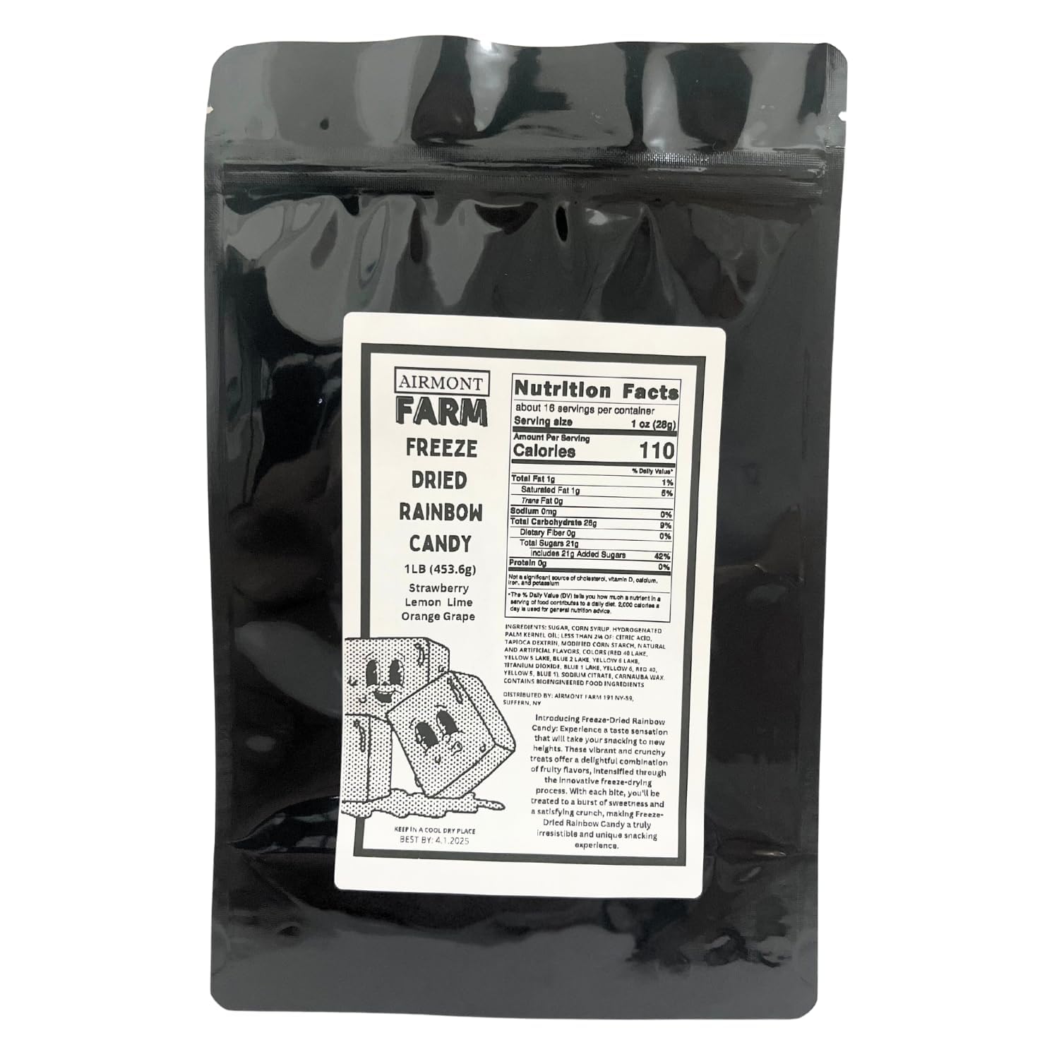 - Q: How should I store Freeze-Dried Rainbow Candy to maintain its freshness? A: To keep Freeze-Dried Rainbow Candy fresh, store it in its resealable Mylar bag in a cool, dry place away from moisture and direct sunlight. The resealable feature allows you to protect the candy from air and humidity after each use, preserving its delightful crunch and flavor.