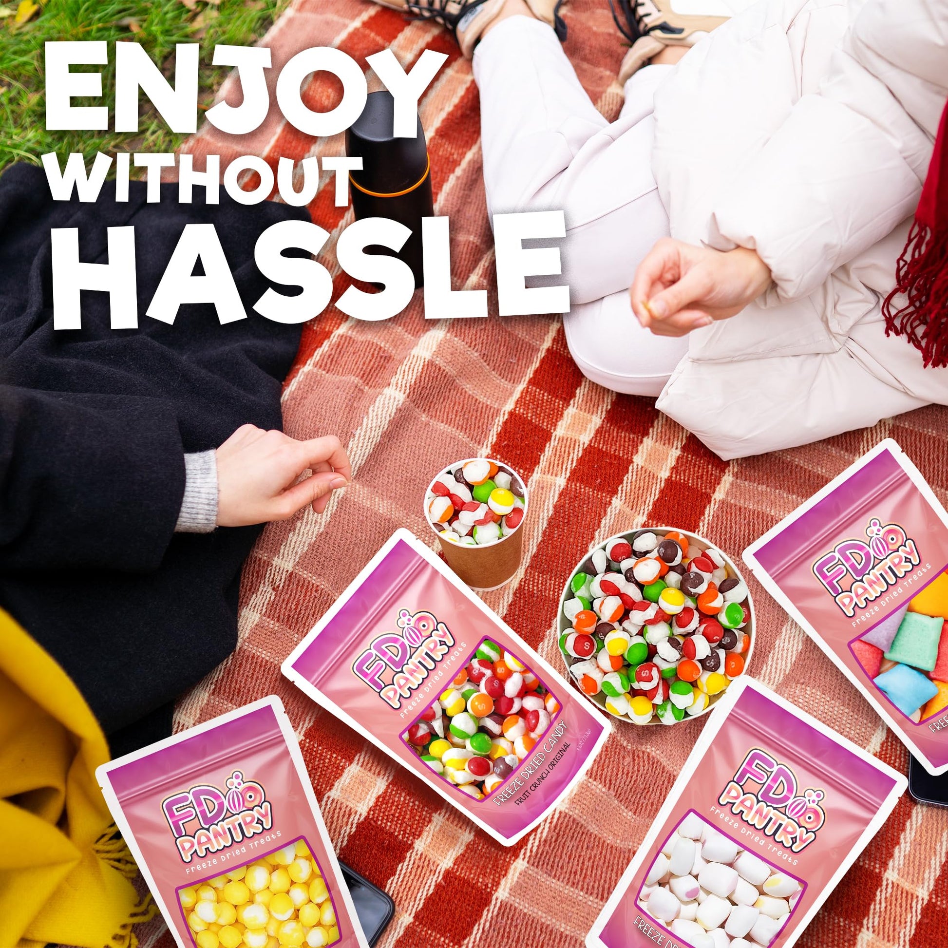 - Q: How does the freeze-drying process enhance the candies? A: The freeze-drying process removes moisture from the candies, intensifying their natural sweetness and flavors while creating a light, crunchy texture that won't stick to your teeth, making them a unique and enjoyable snack.