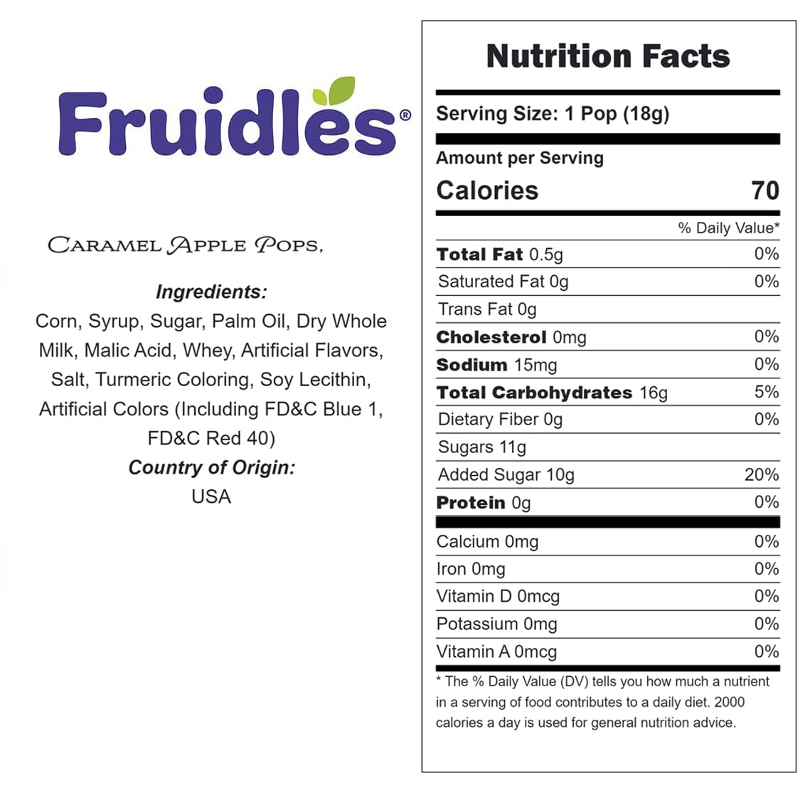 Q: Are Fruidles Caramel Apple Pops kosher?A: Yes, Fruidles Tootsie Caramel Apple Pops are Kosher Certified Dairy, making them suitable for those who adhere to kosher dietary laws.