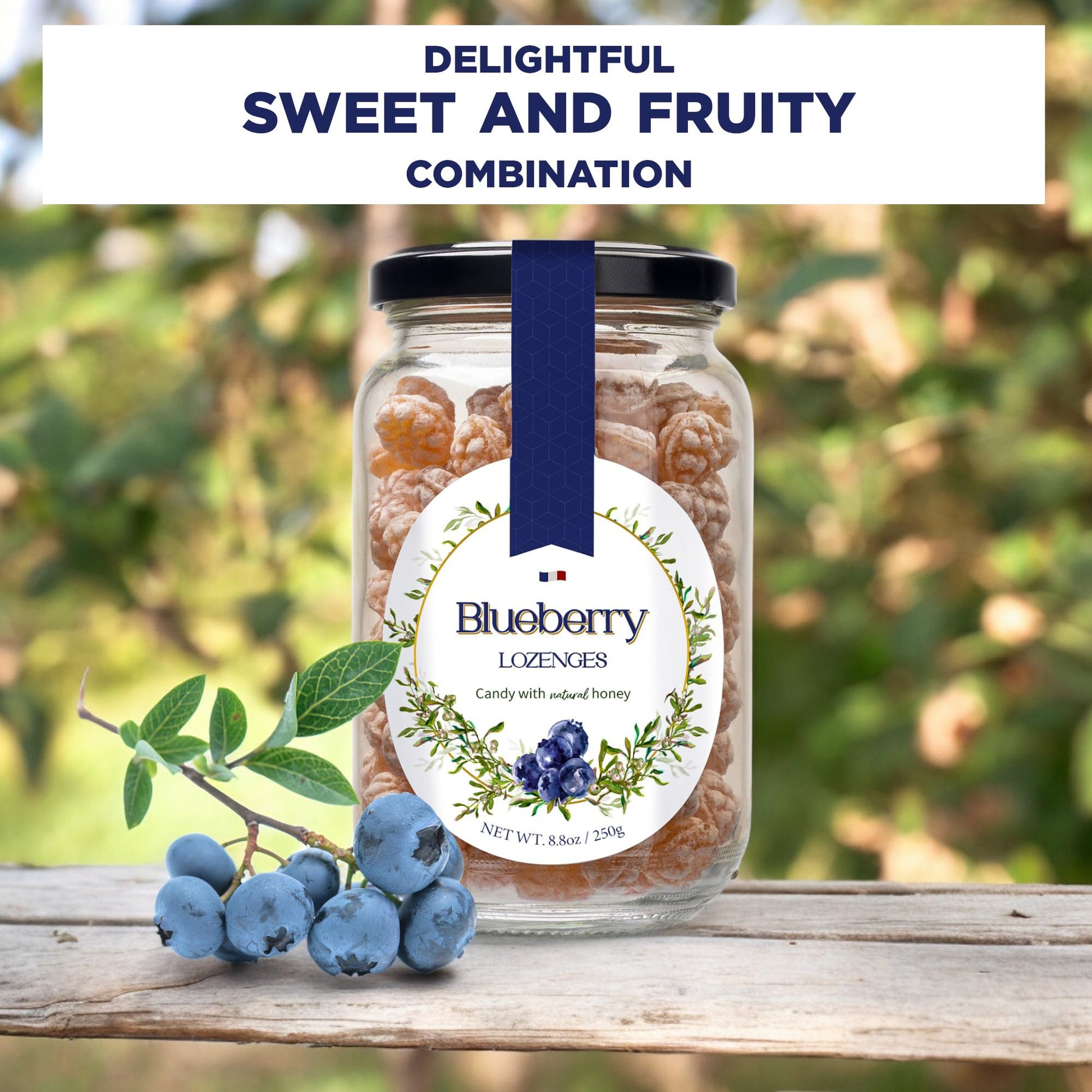 Gourmanity Blueberry Flavor Honey Lozenges Made With Real Honey And Natural Blueberry Flavor, Luxury French Honey Candy, Great For Soothing Your Throat, 8.8Oz Jar