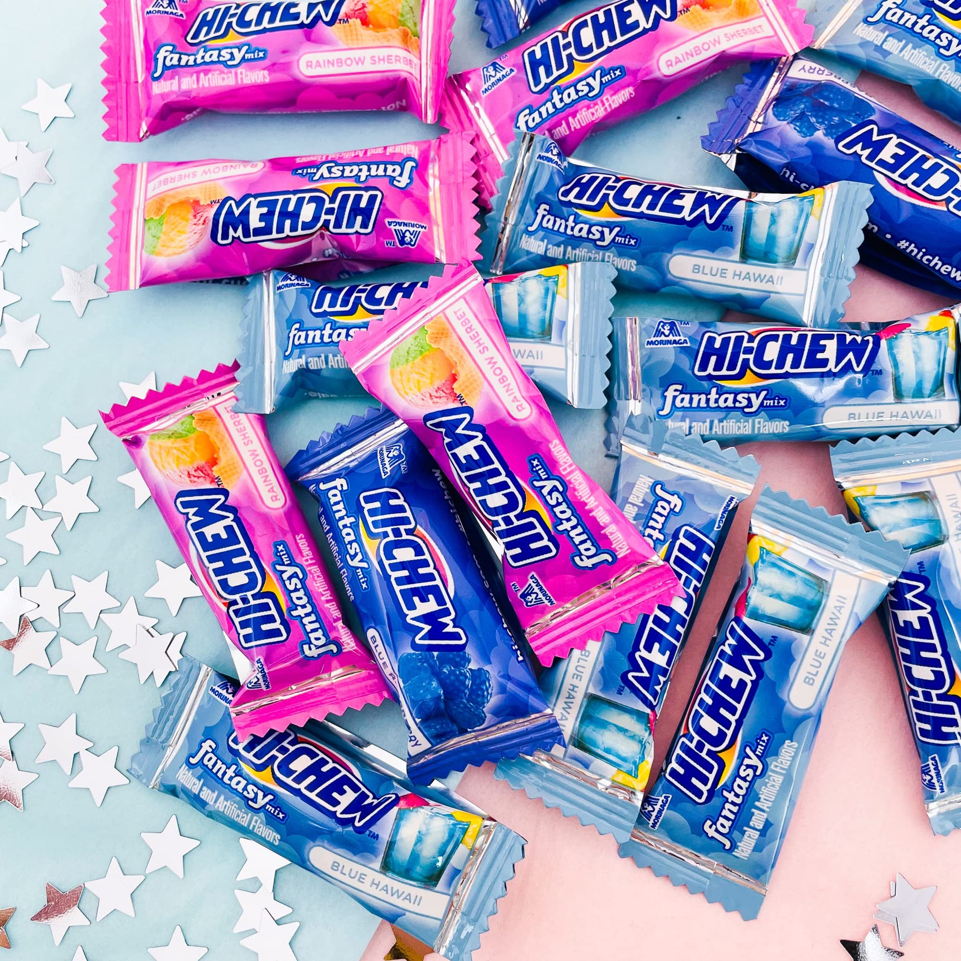 Q: What flavors are included in the Hi Chew Fantasy Mix?A: The Hi Chew Fantasy Mix features an exciting variety of flavors including Rainbow Sherbet, Blue Hawaii, and Blue Raspberry, providing a fruity and chewy experience loved by candy enthusiasts.