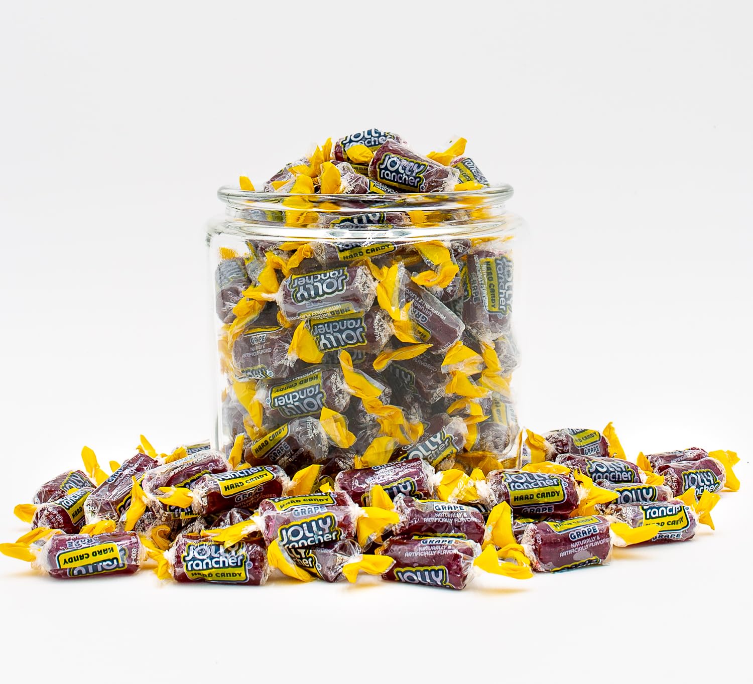 Q: What flavors are included in the JOLLY RANCHER Hard Candy bulk bag?A: The JOLLY RANCHER Hard Candy bulk bag features a delightful assortment of classic fruit flavors, with a focus on the bold and juicy grape flavor. This variety is sure to satisfy candy lovers of all ages.