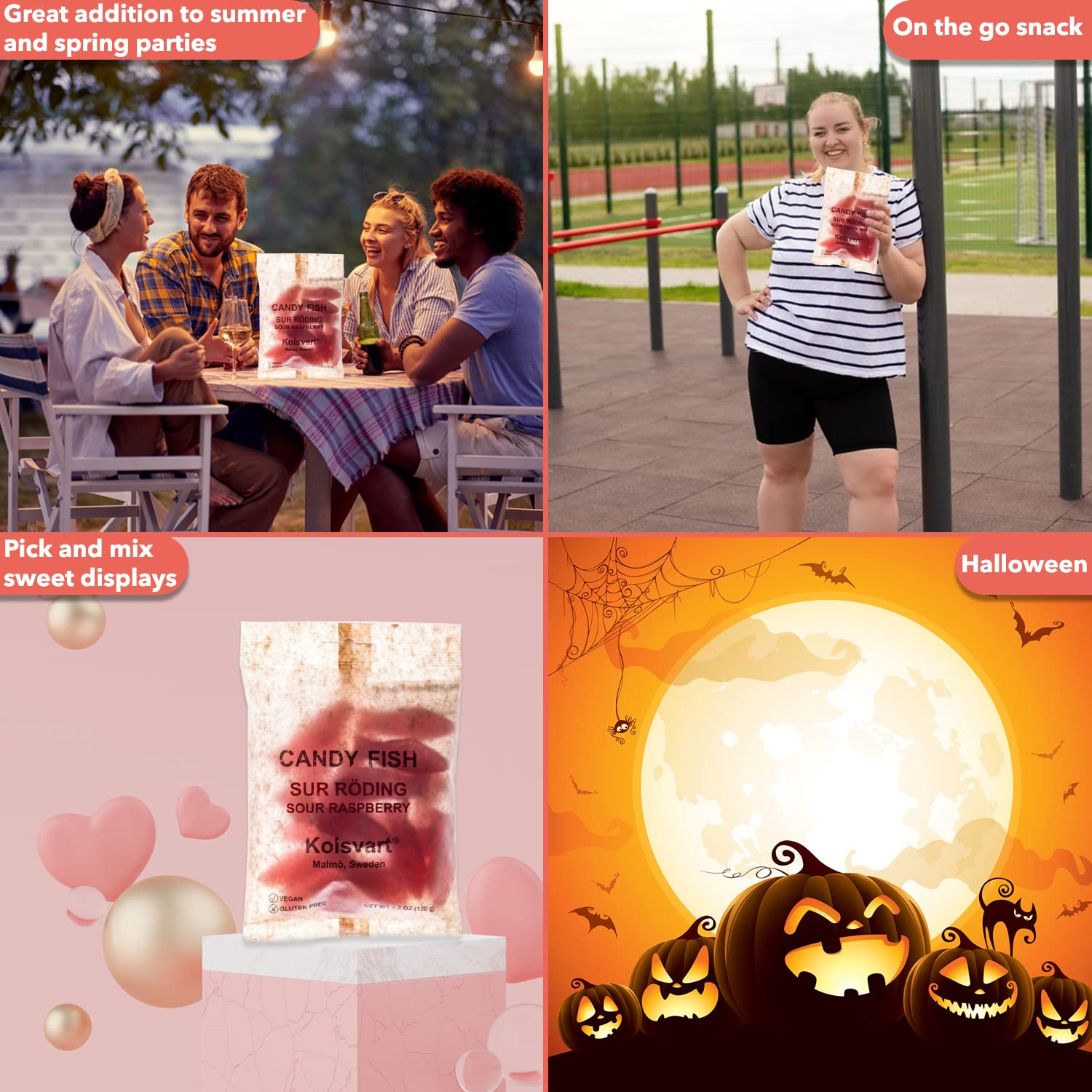 - Q: Are Kolsvart Sour Raspberry Candy Fish gluten-free? A: While the product does not contain bleached or bromated flour, it is important to verify the packaging for gluten-related information. Always check for gluten-free certification if you have specific dietary needs.