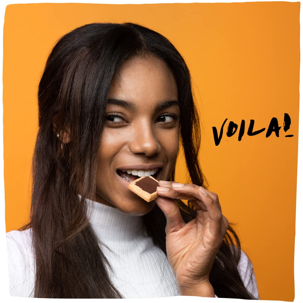 Michel et Augustin bakes buttery square-shaped gourmet cookies filled with dreamy, creamy smooth chocolate ganache, velvety caramel, and delightful nuts. These baked cookies are made with real butter, chocolate, and a whole lot of amour. These tea time biscuits come in four delicious flavors, each featuring a buttery shortbread cookie base and creamy chocolate ganache filling. Bite-sized and perfectly portioned, confectionary makes for the perfect dessert or a quick party snack. Share with friends and family – or keep them all to yourself! These gift cookies are baked in France with ingredients you could find in your kitchen; that means no preservatives and no artificial sweeteners, flavors, or dyes.