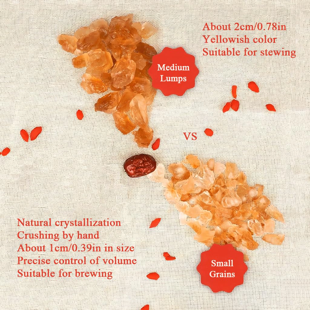 - Q: What is yellow rock sugar and how is it different from regular sugar? A: Yellow rock sugar, like the Mkostlich Medium-Sized Yellow Rock Sugar, is made from fresh sugar cane and undergoes a natural crystallization process. It has a mild sweetness and a light aroma, making it less sweet than regular white sugar while preserving the natural flavor of your beverages and dishes.