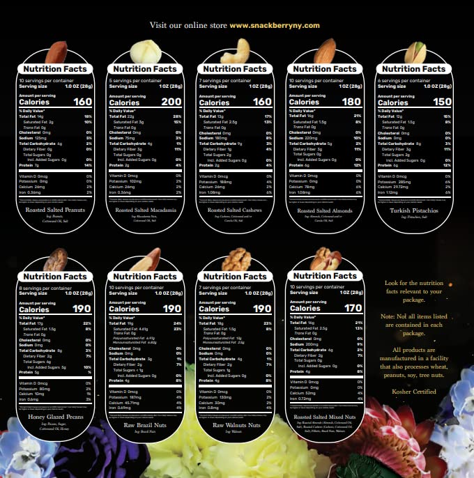 - Q: How is the freshness of the nuts maintained in the gift basket? A: To ensure maximum freshness, each section of the nut sampler box is individually wrapped. Snackberry sources the nuts from the finest artisanal producers, so you can enjoy the perfect texture and taste any time you open the box.