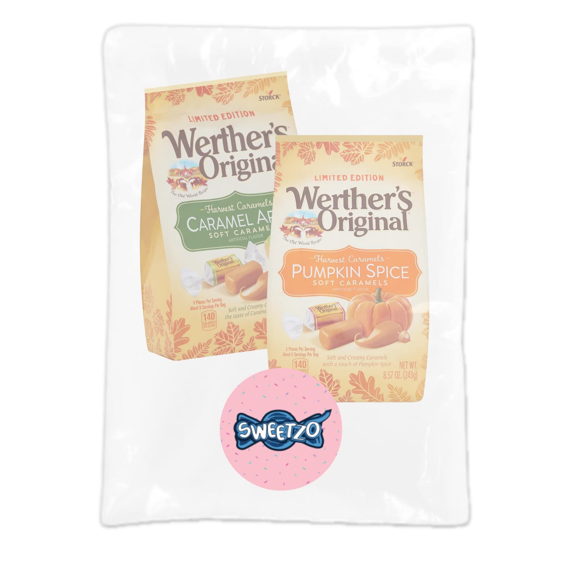 Werther'S Soft Caramels Limited Edition Fall 2022 Candy! This Includes 1 8.57 Ounce Caramel Apple Bag And 1 - 8.57 Ounce Pumpkin Spice Soft Caramels Bags Pumpkin Spice & Caramel Apple Fall Favorite Flavored Candies! Thanksgiving, Halloween, Or Just Because These Treats Are Yummy Individually Wrapped And Ready To Share Gourmet Caramel Candies Great Shareable Candies! Decorate Your Holiday Table With These Candies, Or Put Them In A Bowl For Guests To Grab & Enjoy As They Come And Go. A Candy That Everyone Can Enjoy!