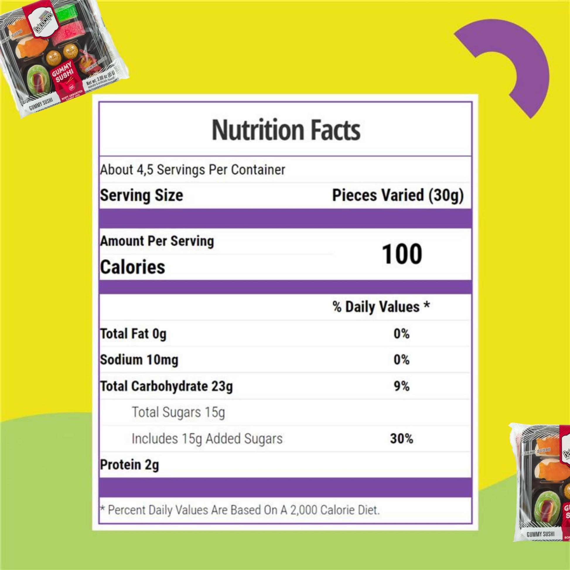 Raindrops Mini Gummy Sushi Soft Assorted Candy. 2X Gummy Nigiri. 2X Gummy Ikura. 2X Gummy Uramaki. 2X Gummy Koikuchi. 2X Gummy California Rolls. Enjoy The Adventure. Www.Raindropscandy.Com. Product Of Netherlands.