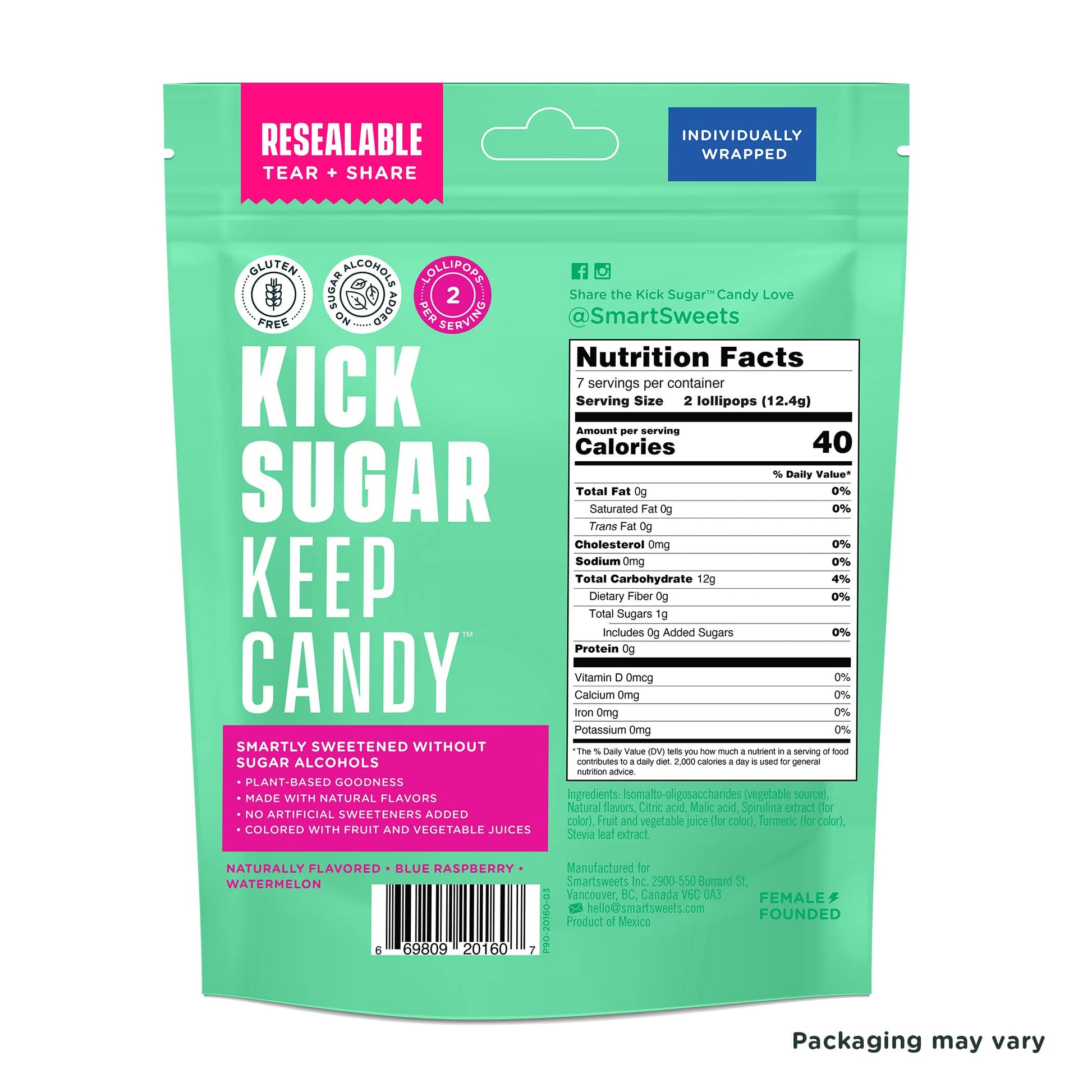 - KICK SUGAR: Enjoy the delightful taste of candy without the added sugars and artificial ingredients. With just 1g of sugar in every two lollipops, SmartSweets allows you to indulge freely.