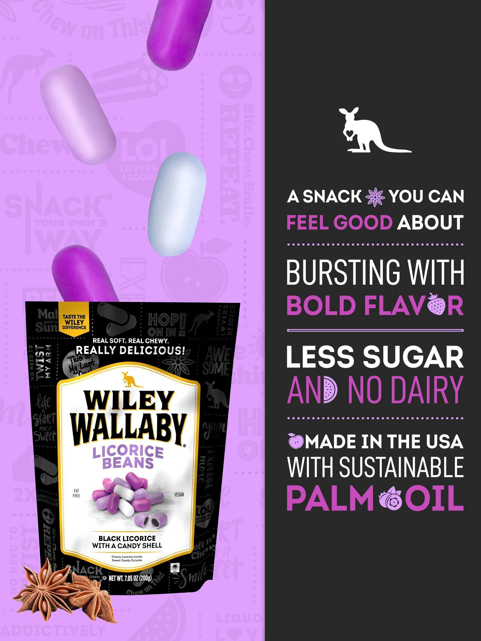Licorice Lovers Rejoice Finally That Tough, Flavorless Licorice Can Be A Thing Of The Past. Wiley Wallaby Licorice Has Big Bold Flavors And A Soft Chewy Texture Your Heart (And Stomach) Really Desires! Bff: Best Fruit Flavor We Packed Wiley So Full Of Fresh Fruit Flavors, There Was Less Room Left For The Things You Could Do Without. Less Sugar, Fat Free And Absolutely No Dairy Or High Fructose Corn Syrup - Now Your Conscience Can Be Clear While You Enjoy Our Our Wiley Fruit Flavors. Win-Win-Win! Bite. Chew. Smile. Repeat. Whether On Your Own Or With Your Favorite People, Wiley Makes The Perfect Mess-Free Snack Anytime, Anywhere! So The Next Time You'Re Headed To The Movies, Out On A Hike, Or Meeting Up With Friends, Grab A Bag Of Wiley. Explore More We Believe That ''Status Quo'' Isn'T Always Best. That'S Why We Continually Develop New Products And Flavors.