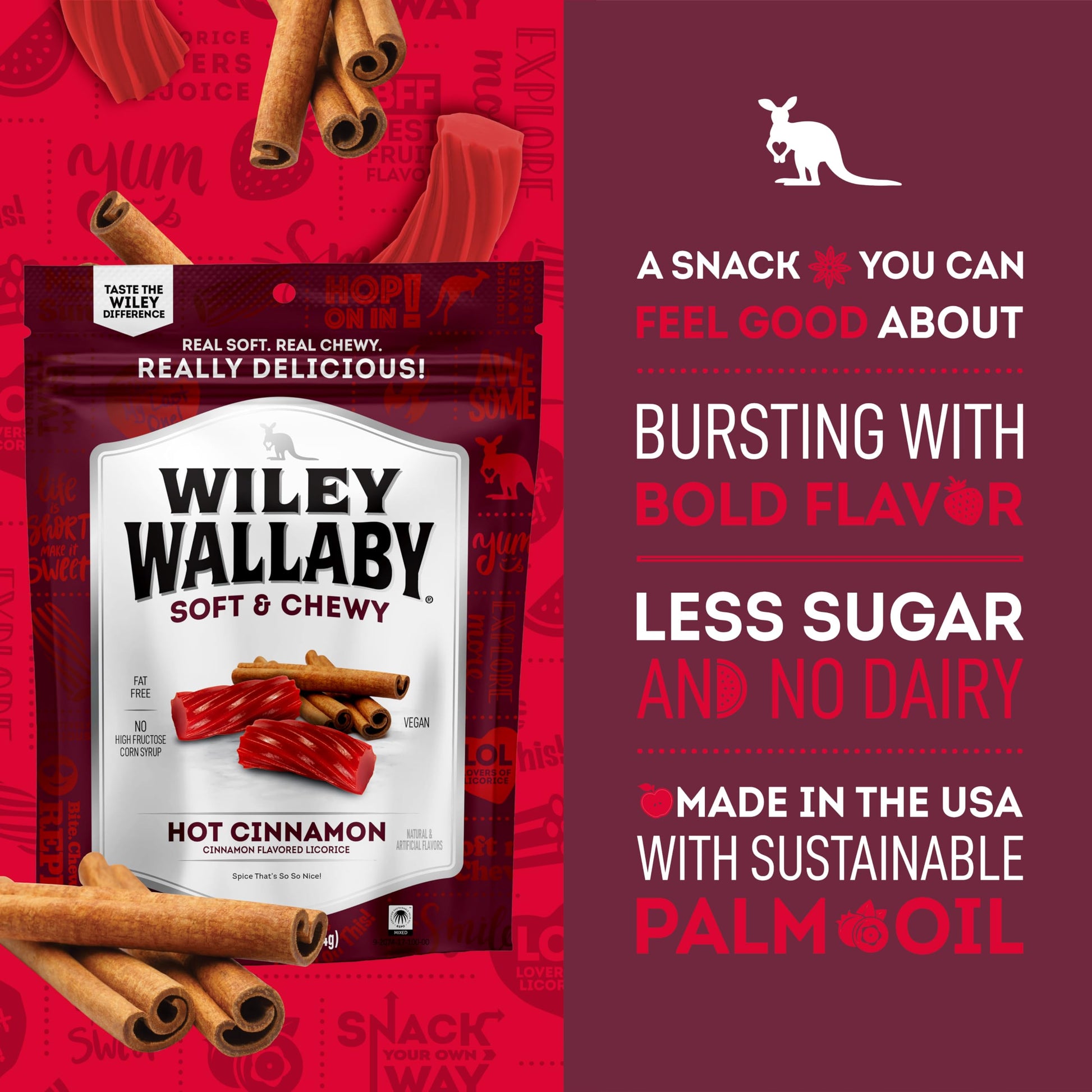 Licorice Lovers Rejoice Finally That Tough, Flavorless Licorice Can Be A Thing Of The Past. Wiley Wallaby Licorice Has Big Bold Flavors And A Soft Chewy Texture Your Heart (And Stomach) Really Desires! Bff: Best Fruit Flavor We Packed Wiley So Full Of Fresh Fruit Flavors, There Was Less Room Left For The Things You Could Do Without. Less Sugar, Fat Free And Absolutely No Dairy Or High Fructose Corn Syrup - Now Your Conscience Can Be Clear While You Enjoy Our Our Wiley Fruit Flavors. Win-Win-Win! Bite. Chew. Smile. Repeat. Whether On Your Own Or With Your Favorite People, Wiley Makes The Perfect Mess-Free Snack Anytime, Anywhere! So The Next Time You'Re Headed To The Movies, Out On A Hike, Or Meeting Up With Friends, Grab A Bag Of Wiley. Explore More We Believe That ''Status Quo'' Isn'T Always Best. That'S Why We Continually Develop New Products And Flavors - Like Our Sourrageous Drops!