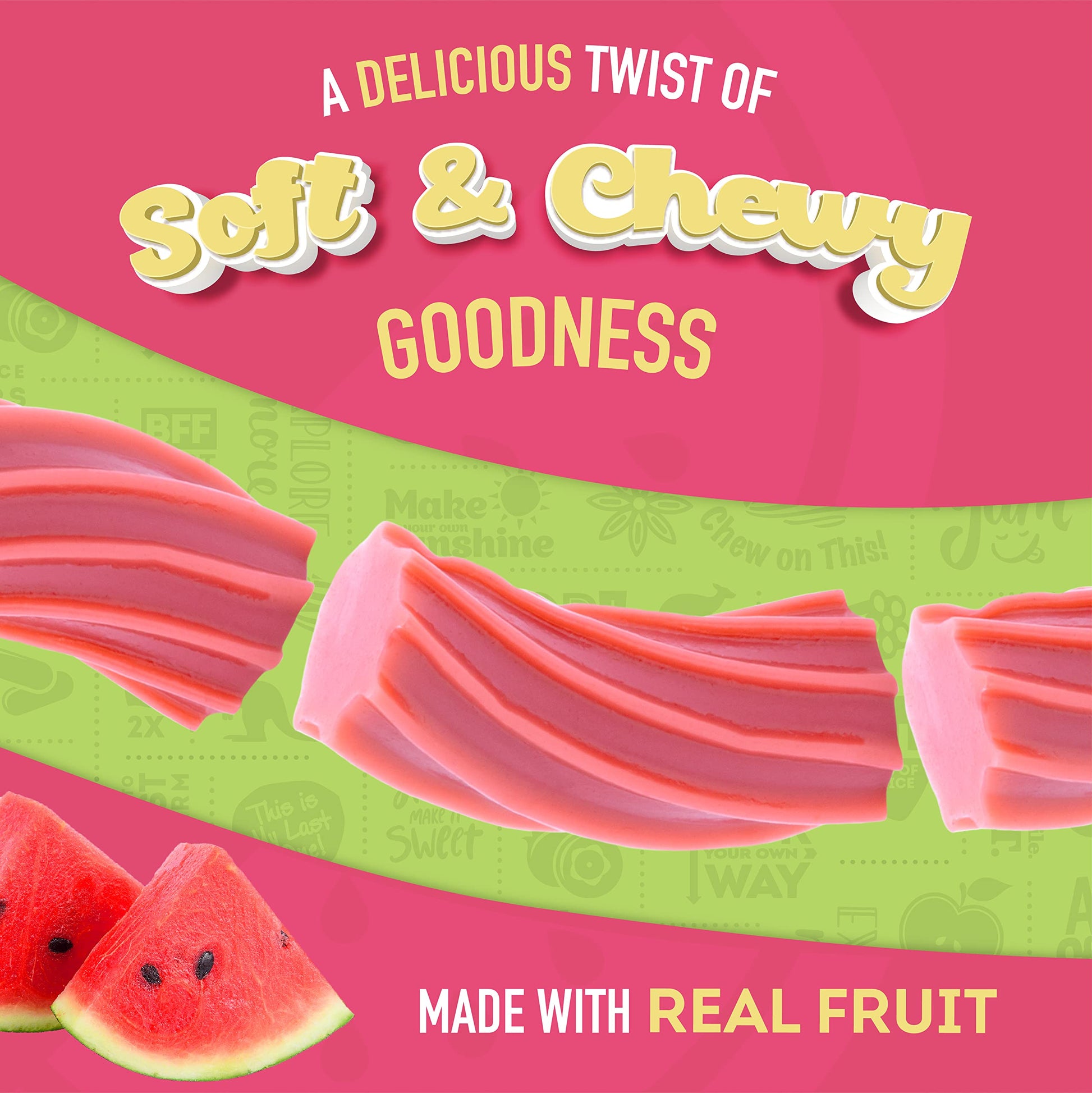 Q: What are the main flavors in Wiley Wallaby Licorice?A: Wiley Wallaby Licorice is known for its bold fruit flavors, particularly the delicious watermelon flavor in this 24-ounce pack. It is designed for licorice lovers who appreciate a soft and chewy texture.