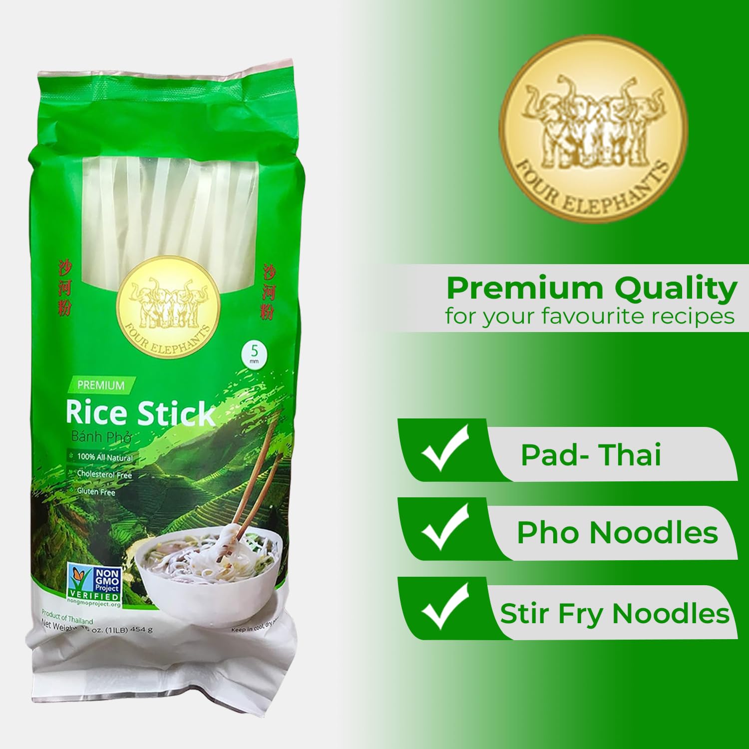 Four Elephants Premium Rice Sticks Are Specifically Sourced From The Best Growing Region In Thailand To Bring You An Excellent Product. Our Rice Sticks Are Certified Non-Gmo And Naturally Gluten-Free. Rice Sticks Are Delicate Noodles Commonly Used In A Variety Of Standout Asian Dishes Like Pad Thai, Pho, And Stir Fry. Naturally Nut-Free And Gluten-Free, Our Premium Rice Sticks Are A Popular Four Elephants Product For Those Who Want Authentic Asian Flavors And For Those Who Have Dietary Restrictions And Cant Eat Wheat Noodles. Choose A Pack Of One Or A Pack Of Three.