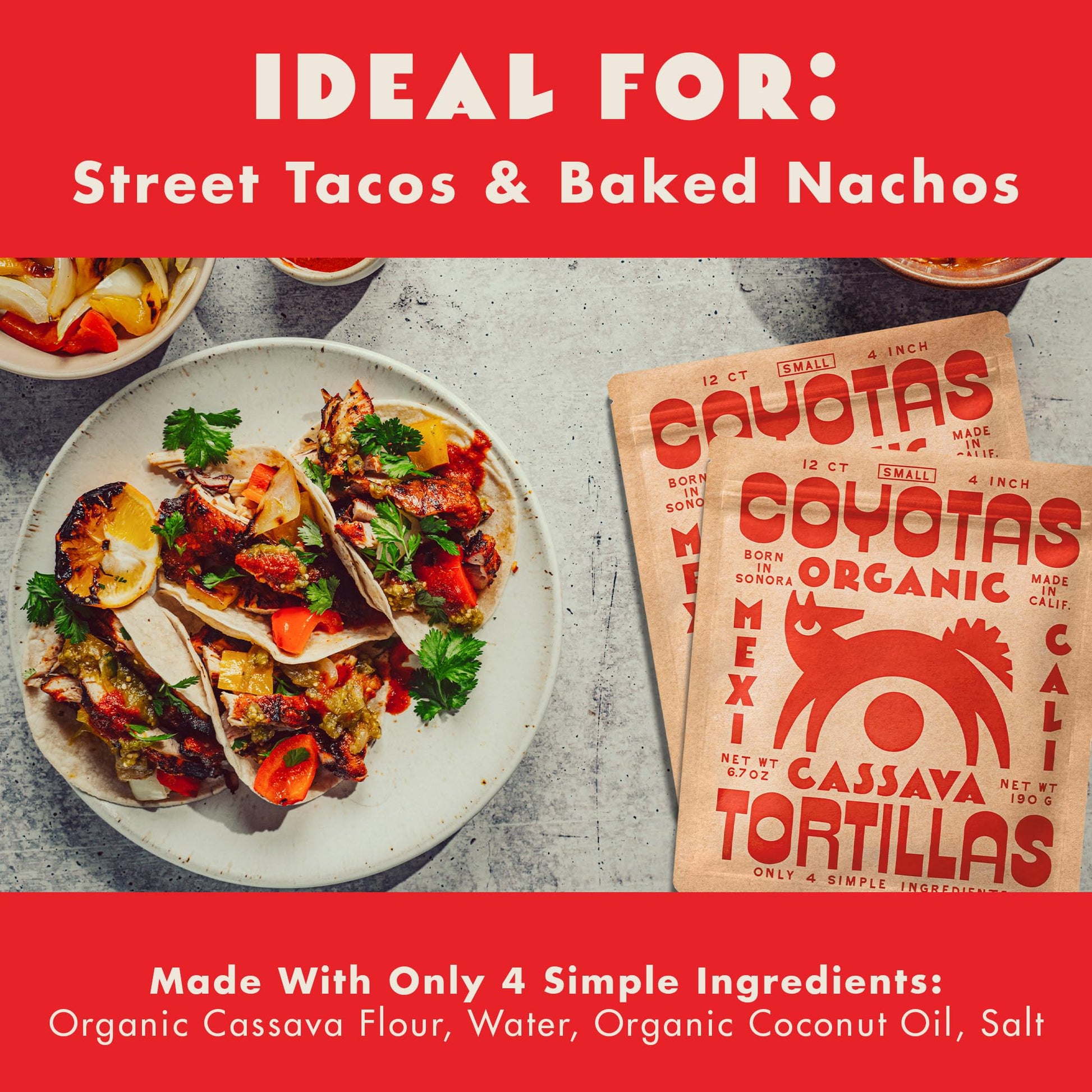 Soft and pliable, COYOTAS Cassava Tortillas are a delicious alternative to traditional wheat or corn-based tortillas. Crafted with care using organic cassava flour, water, organic coconut oil, and sea salt, these tortillas are completely plant-based, grain-free, and gluten-free. The unique texture of these tortillas makes them ideal for a wide variety of dishes, from savory tacos and wraps to sweet quesadillas.