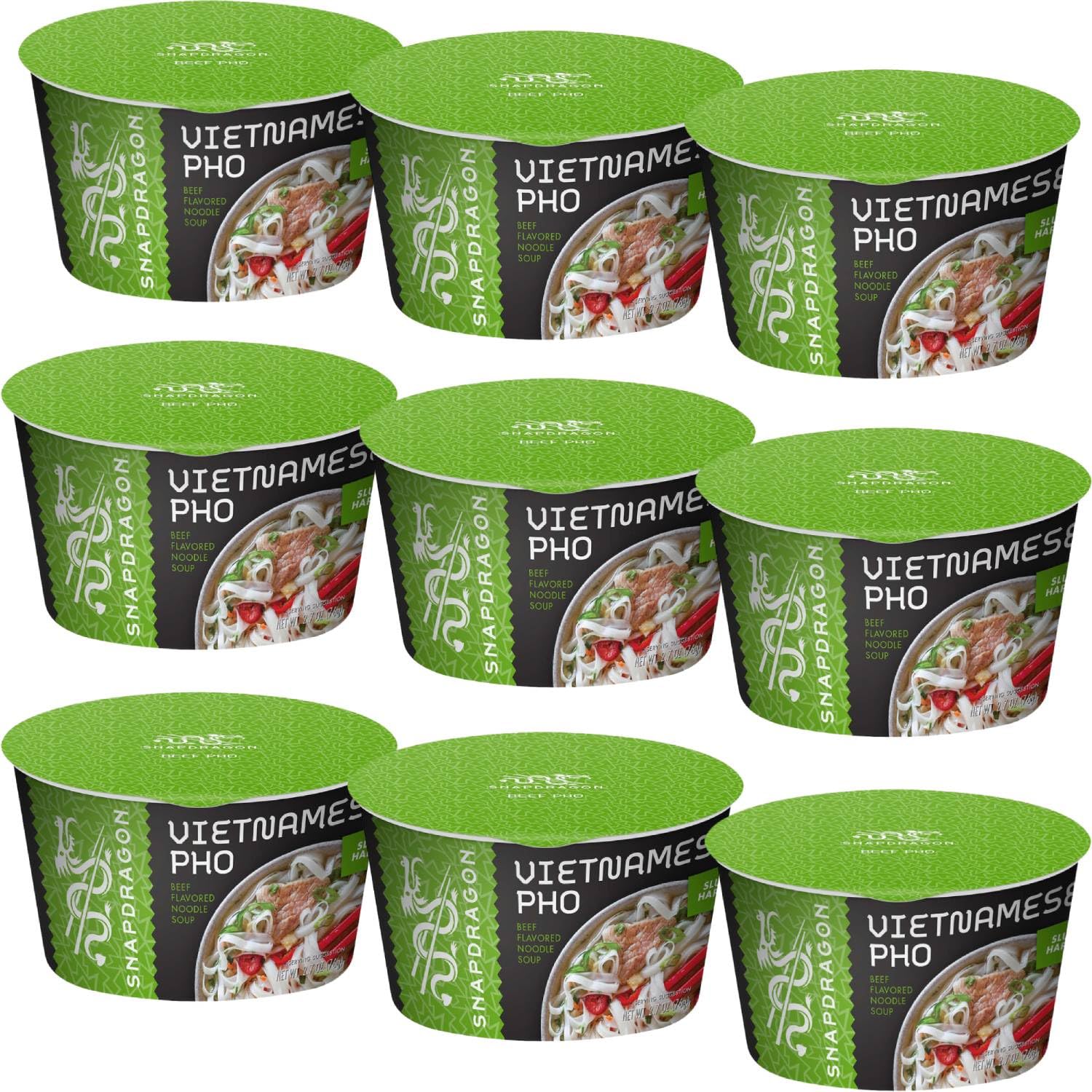 Instant Pho Noodle Bowls Bundle. Includes Nine - 2.7 Oz Vietnamese Pho Bowls In Beef Broth Soup! Our Bowls Are 15% Bigger Than Other Package.