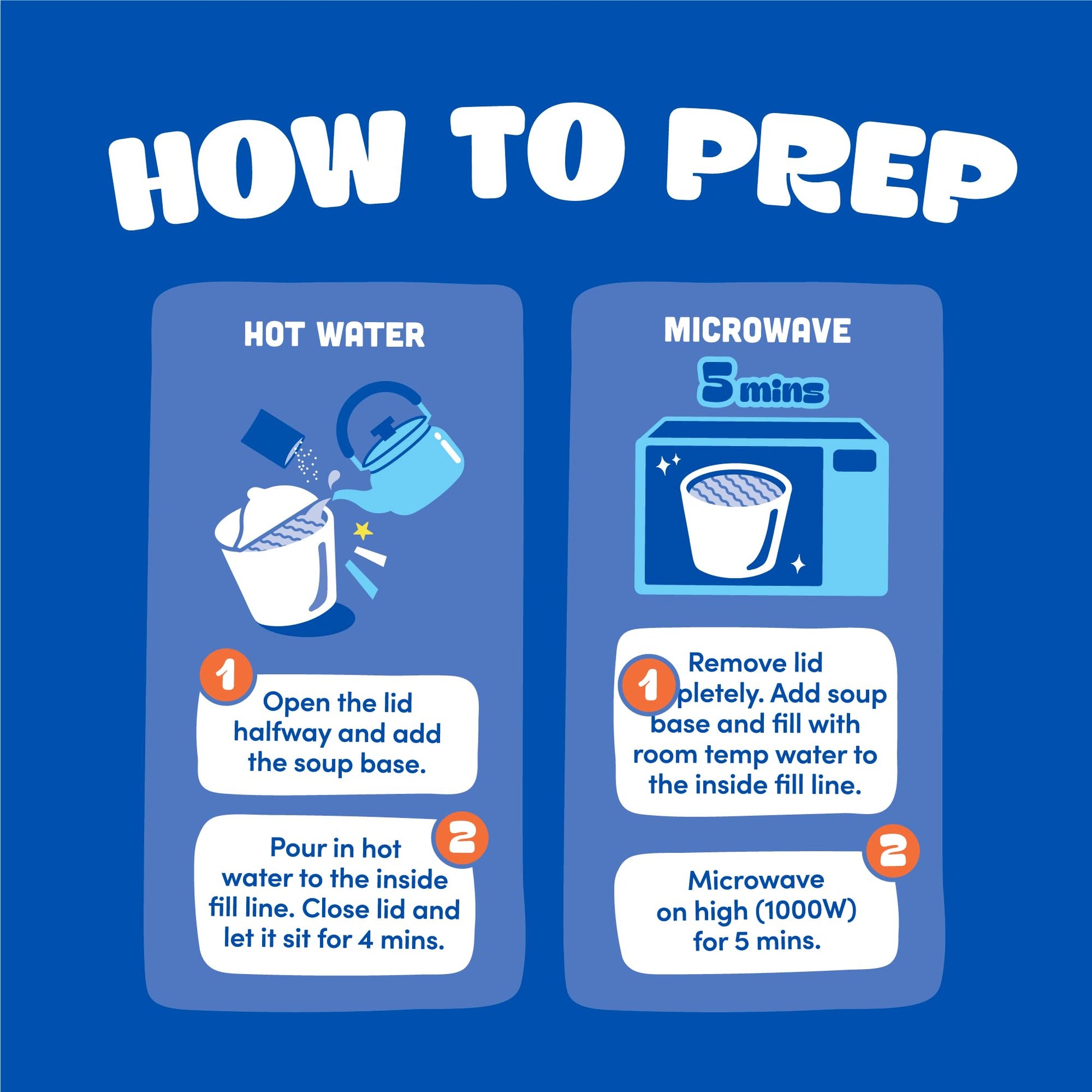 Q: How do I prepare OTOKI Jin Ramen Mild Bowl?A: You can prepare OTOKI Jin Ramen Mild Bowl by adding boiling water and letting it sit for 4 minutes, or you can microwave it for 5 minutes. This allows for a quick and convenient meal without the need for dishes.