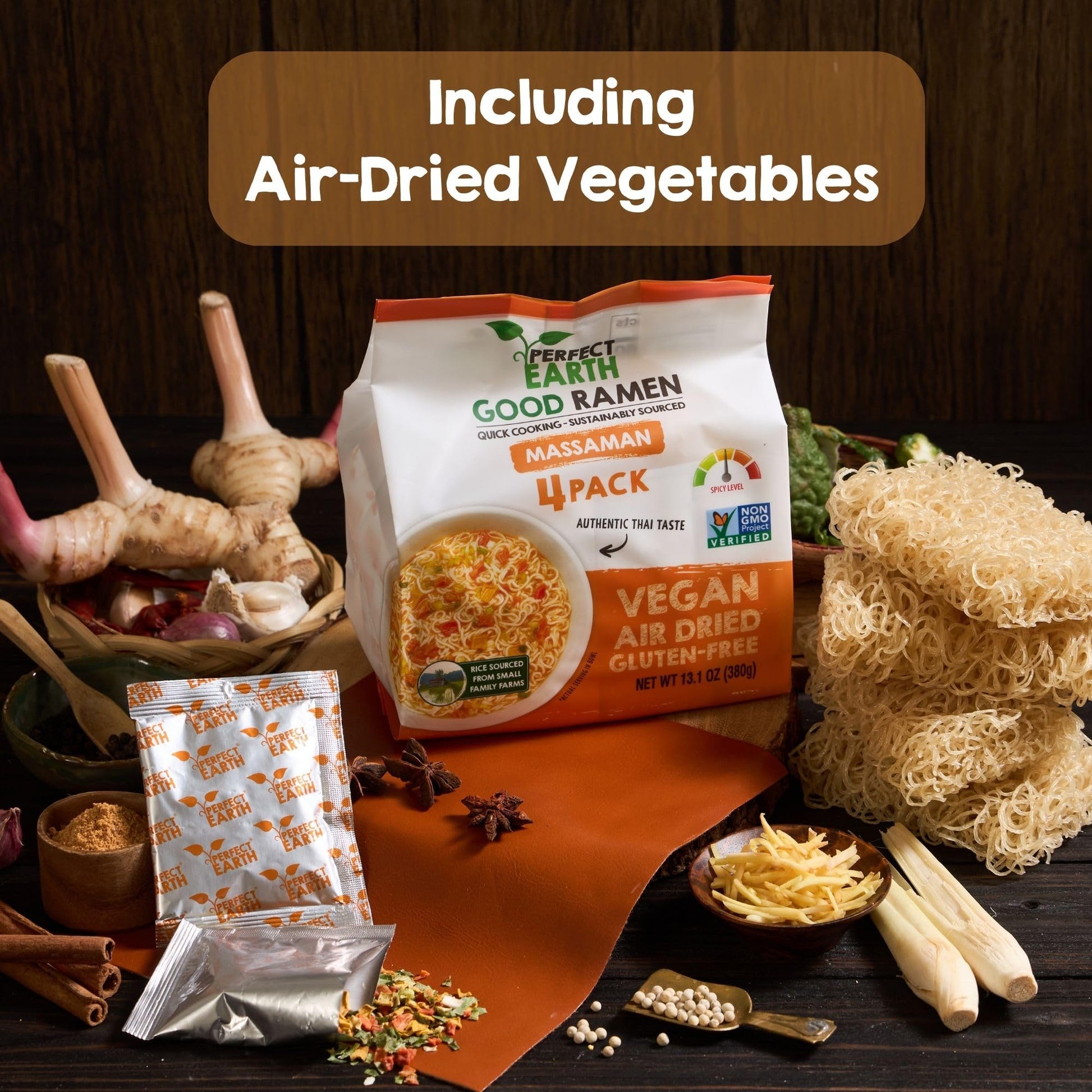 - Q: How long does it take to prepare Perfect Earth Good Ramen's Massaman Noodles? A: These instant noodles are designed for convenience and can be prepared in just 6 minutes. This quick cooking time allows you to enjoy an authentic bowl of Thai noodles without the lengthy preparation typically associated with traditional meals.