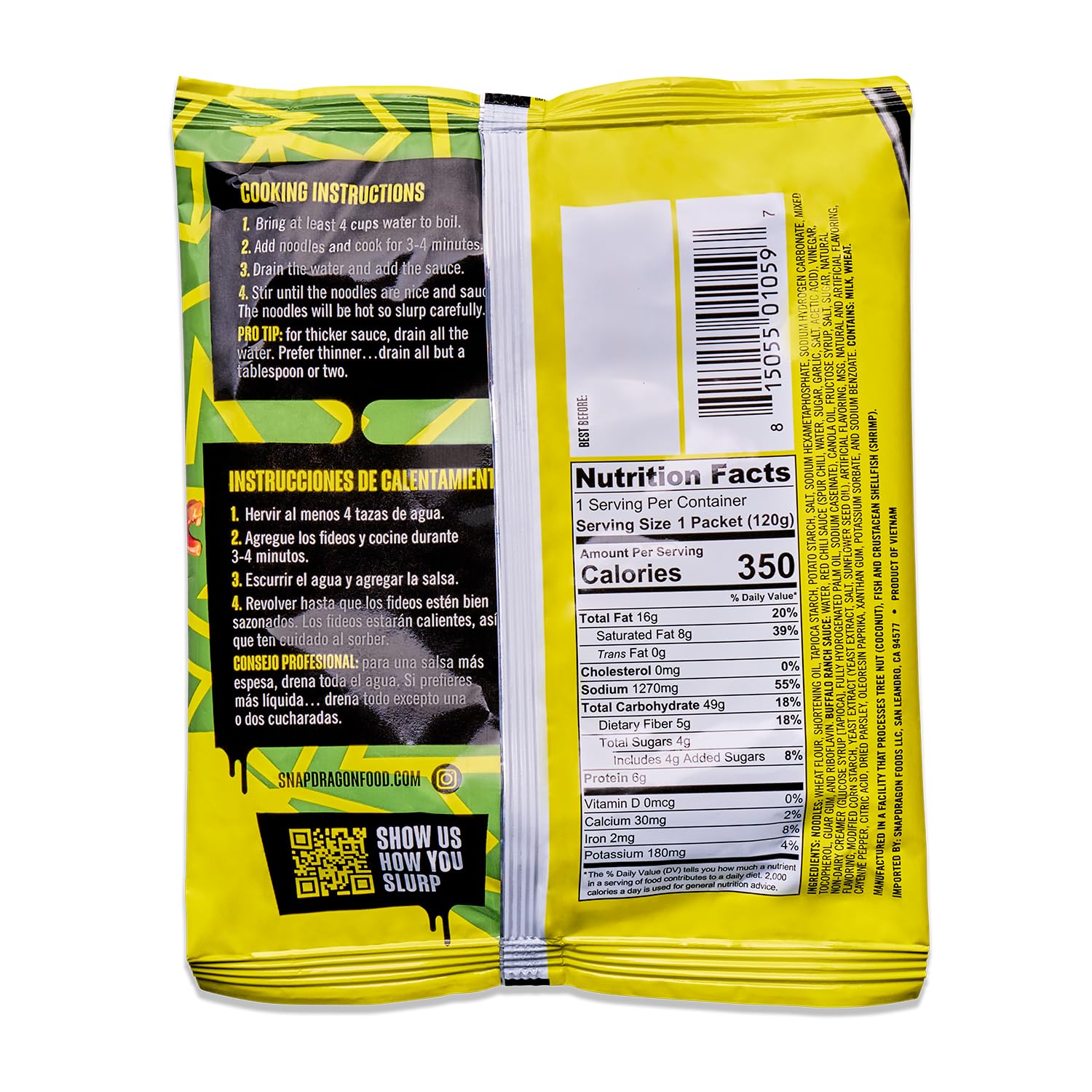 Q: What flavors are available in Snapdragon Saucy Noodles?A: Snapdragon Saucy Noodles are available in several bold flavors, including Spicy Buffalo Ranch, Korean BBQ, and Cheezy Umami. Each variety offers a unique twist on comfort food with global influences.