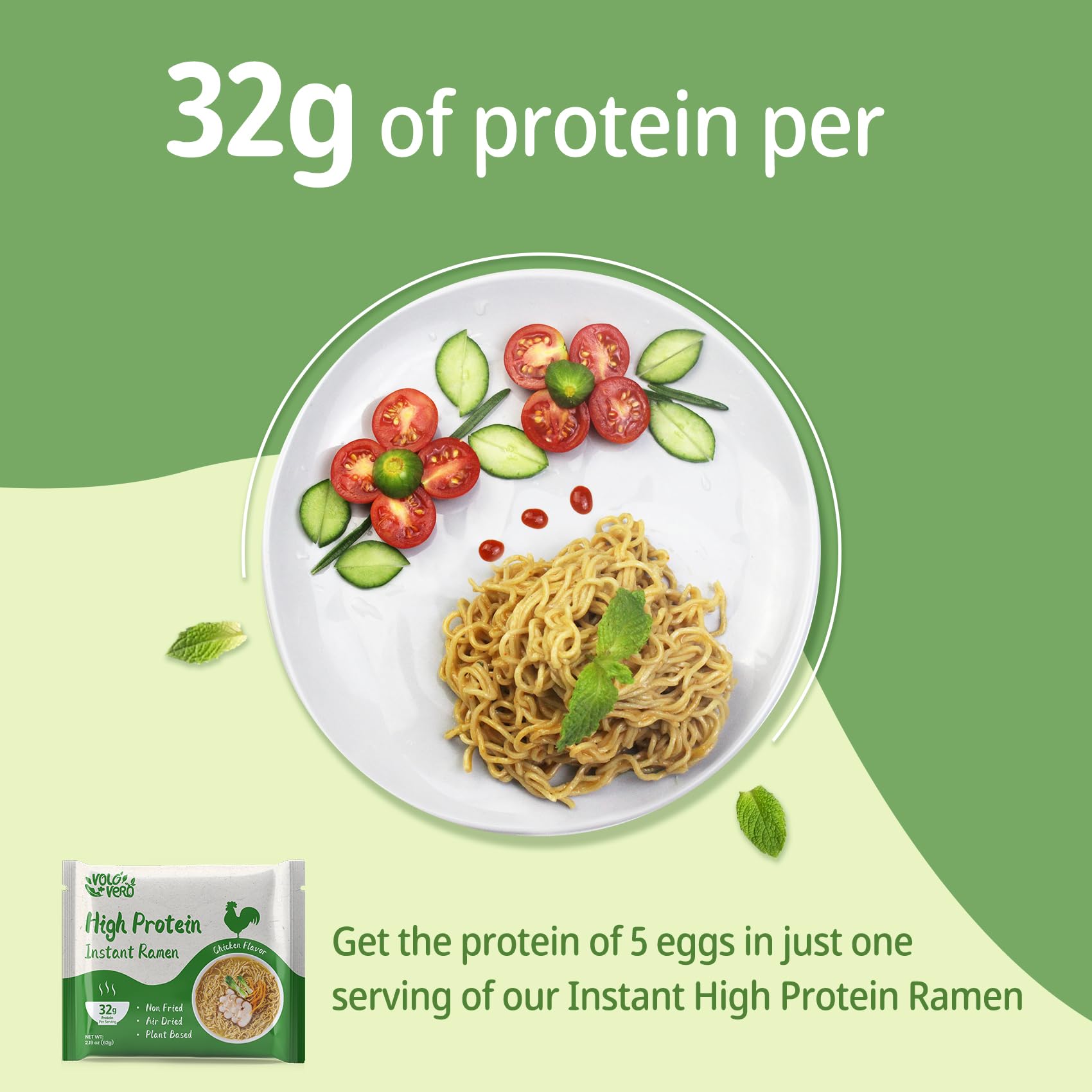 - Q: What are the main health benefits of VOLO VERO High Protein Instant Ramen? A: VOLO VERO High Protein Instant Ramen offers numerous health benefits, including 32 grams of plant-based protein per serving and only 21 grams of carbs. It's ideal for those looking to maintain a balanced diet while enjoying a delicious meal, making it perfect for fitness enthusiasts and health-conscious individuals.