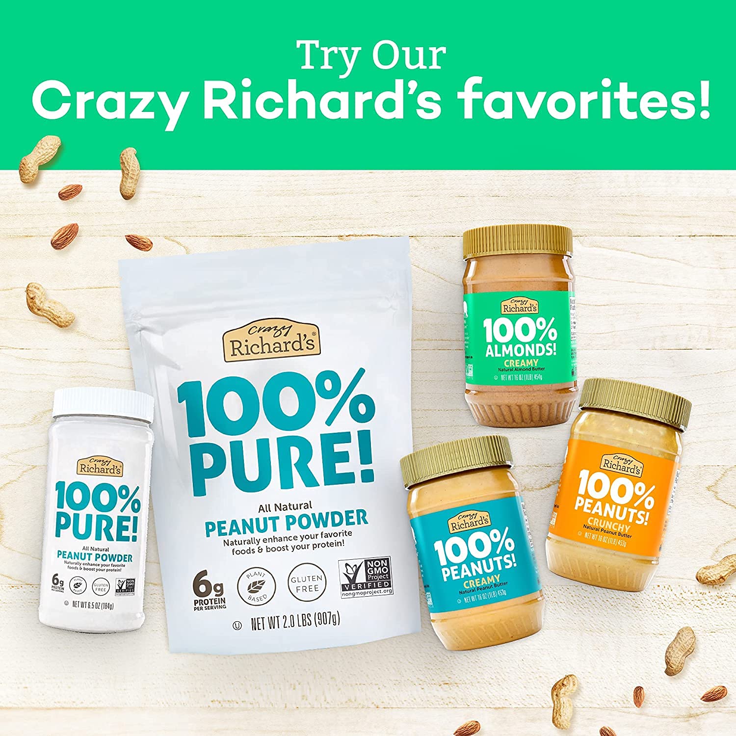 Crazy Richards - 100% All-Natural Peanut Powder, Powdered Peanut Butter, No Sugar Added, Non-GMO, Vegan Resealable Jar Pack of 1