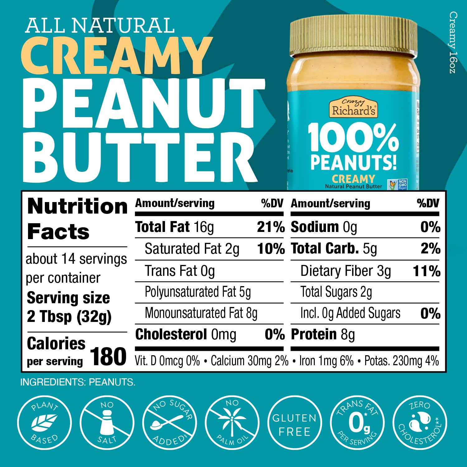 Q: Is Crazy Richard's peanut butter vegan?A: Yes, Crazy Richard's 100% All-Natural Peanut Butter is completely vegan, made with only raw peanuts and no added sugars or animal products.