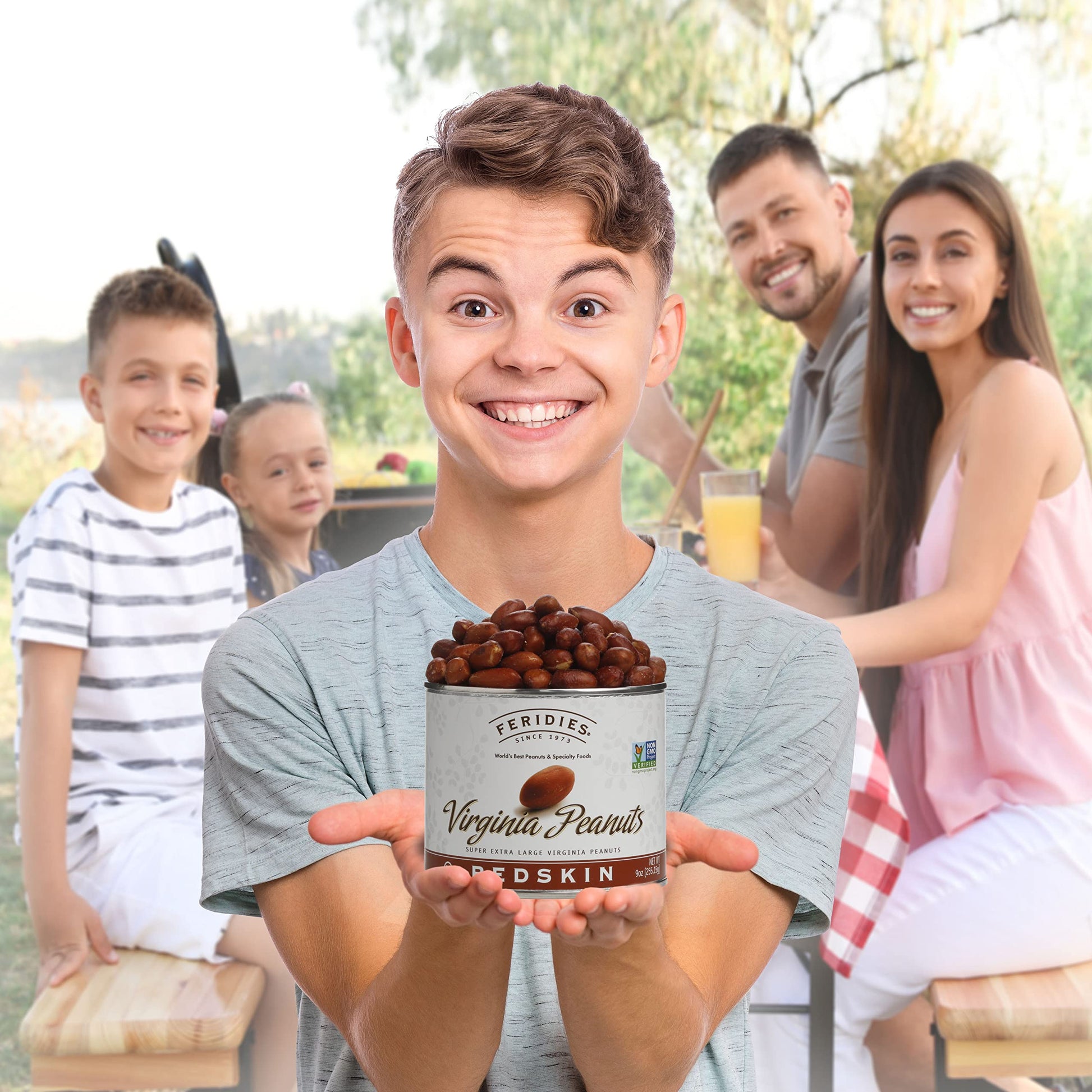 - Q: What makes FERIDIES peanuts different from other brands? A: FERIDIES Extra Large Salted Red Skin Peanuts are handpicked from the largest two percent of the Virginia peanuts crop, ensuring top-grade quality and distinctive flavor that sets them apart from other brands.