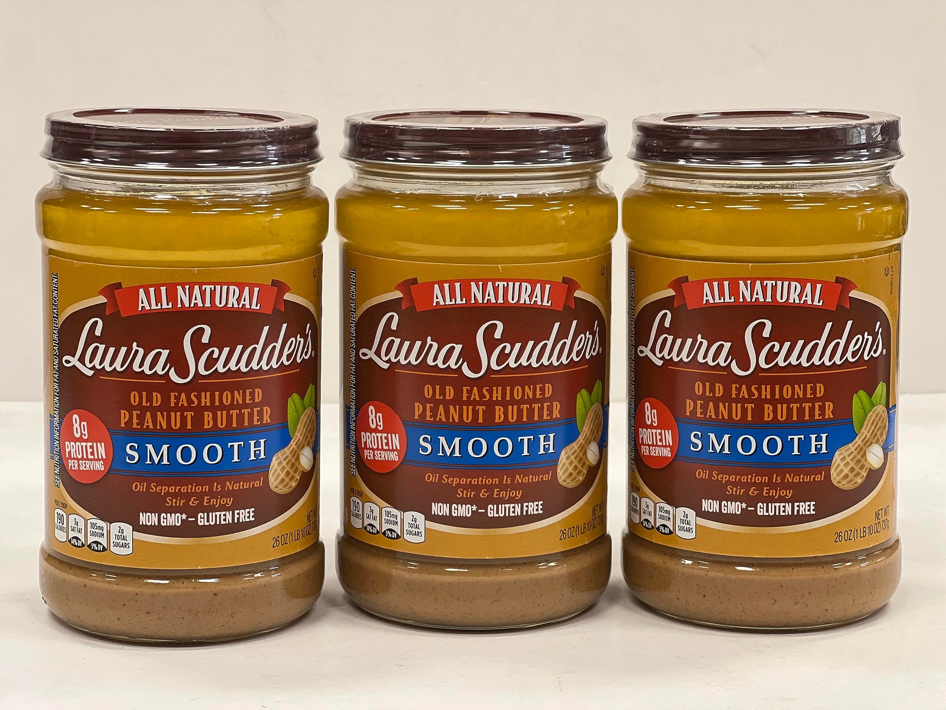 Laura Scudders Old Fashioned Natural Smooth Peanut Butter, 26-Ounce Glass Jars (Pack of 3)