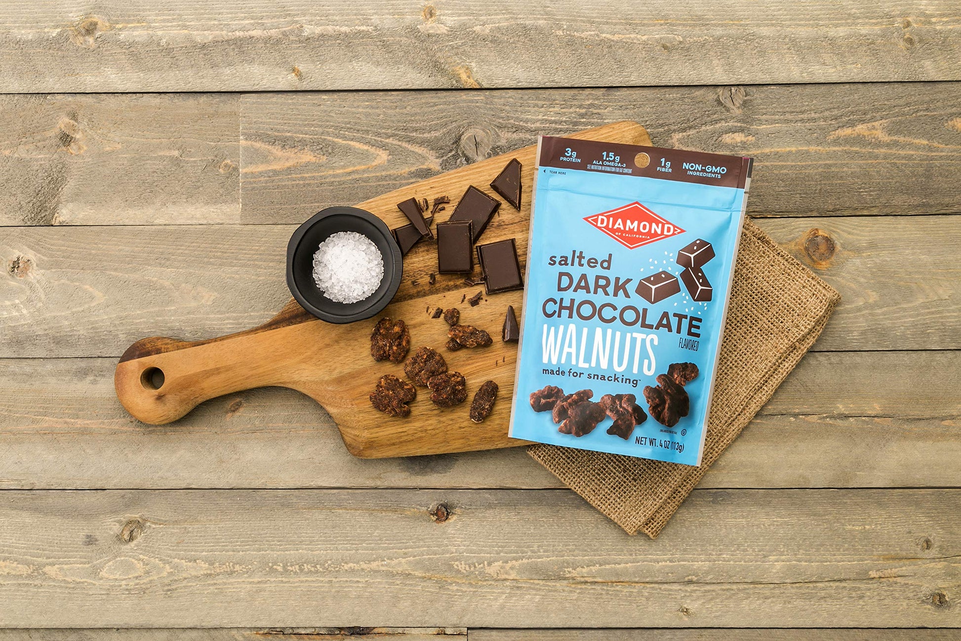 - Q: Can these walnuts be enjoyed straight from the bag? A: Absolutely! Diamond of California Salted Dark Chocolate Walnuts are ready to be enjoyed straight from the bag, making them a convenient and delicious protein snack for any time of day.