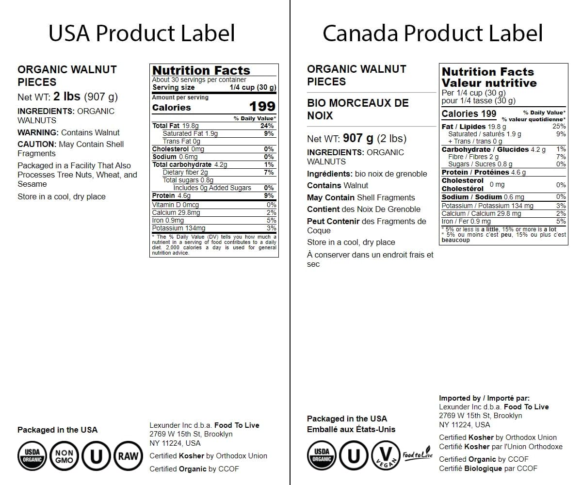 Food to Live Organic Walnut Pieces, 2 Pounds - California Chandler Variety. Medium Size. Non-GMO. Rich in Omega-3, Antioxidants,