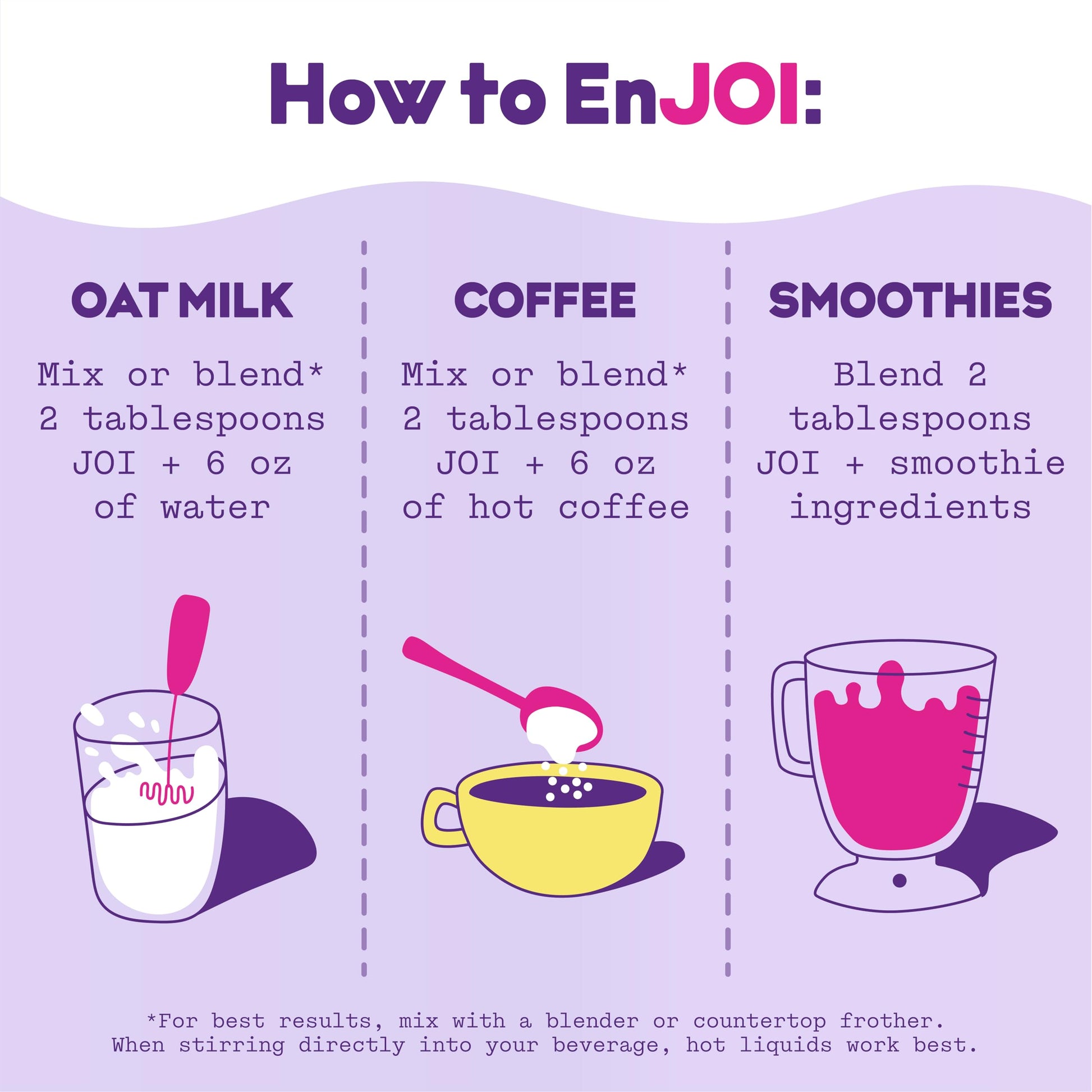 Introducing our new and improved, first of its kind: INSTANT Organic Oat Milk Powder! Now you can add these travel sized packets JOI directly to your water, protein shake, smoothie, tea, cocoa whatever tickles your fancy! Just stir it up and youre ready to go - no more blending, no more clumping, same great flavor. One post-consumer recycled stick pack makes one cup of milk. Mix two for added flavor.