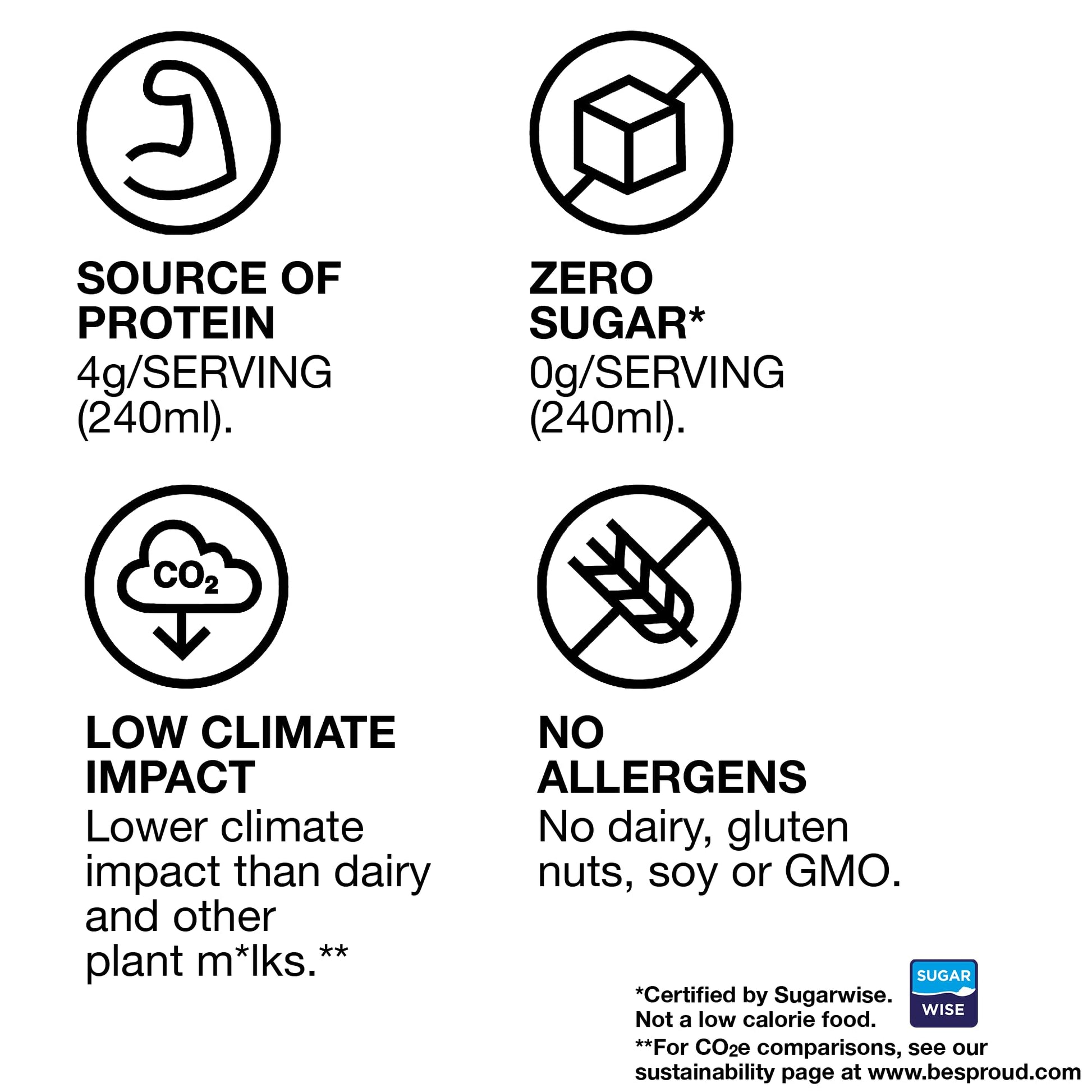 Sproud Unsweetened is an alternative milk that is rich in taste with zero sugar. ?Vegan, Made from Peas ?Source of Protein ?Rich in Essential Amino Acids ?60% Less Sugars ?High in Unsaturated Fats ?Source of Vitamin B2, B12, D & Calcium ?Dairy, Nut, Gluten & Soy Sproud Sproud is more than a dairy-free milk alternative. Its more than sustainability and taste coming together; its a family of people passionate about doing things better, about coming together to create great products with a minimal climate footprint. Sproud is a design and a conscious lifestyle coming together. It belongs to vegans just as much as to everyone else. Its for lacto intolerants, gluten intolerants, and for people that simply want to make better food choices based on taste. Our mission is to make it easy for everyone to choose climate-friendly vegan products that taste good - and, importantly, are good for Mother Nature. Be Sproud. Wed love you to join our family.