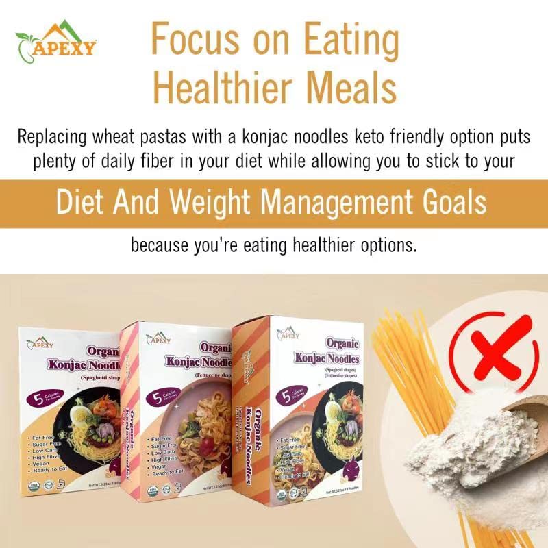 Apexy Organic Shirataki Konjac Noodle with Organic Oat Flour 42.24oz 8 Pouches Inside Healthy Diet, Low Calorie, Low-Carb Gluten