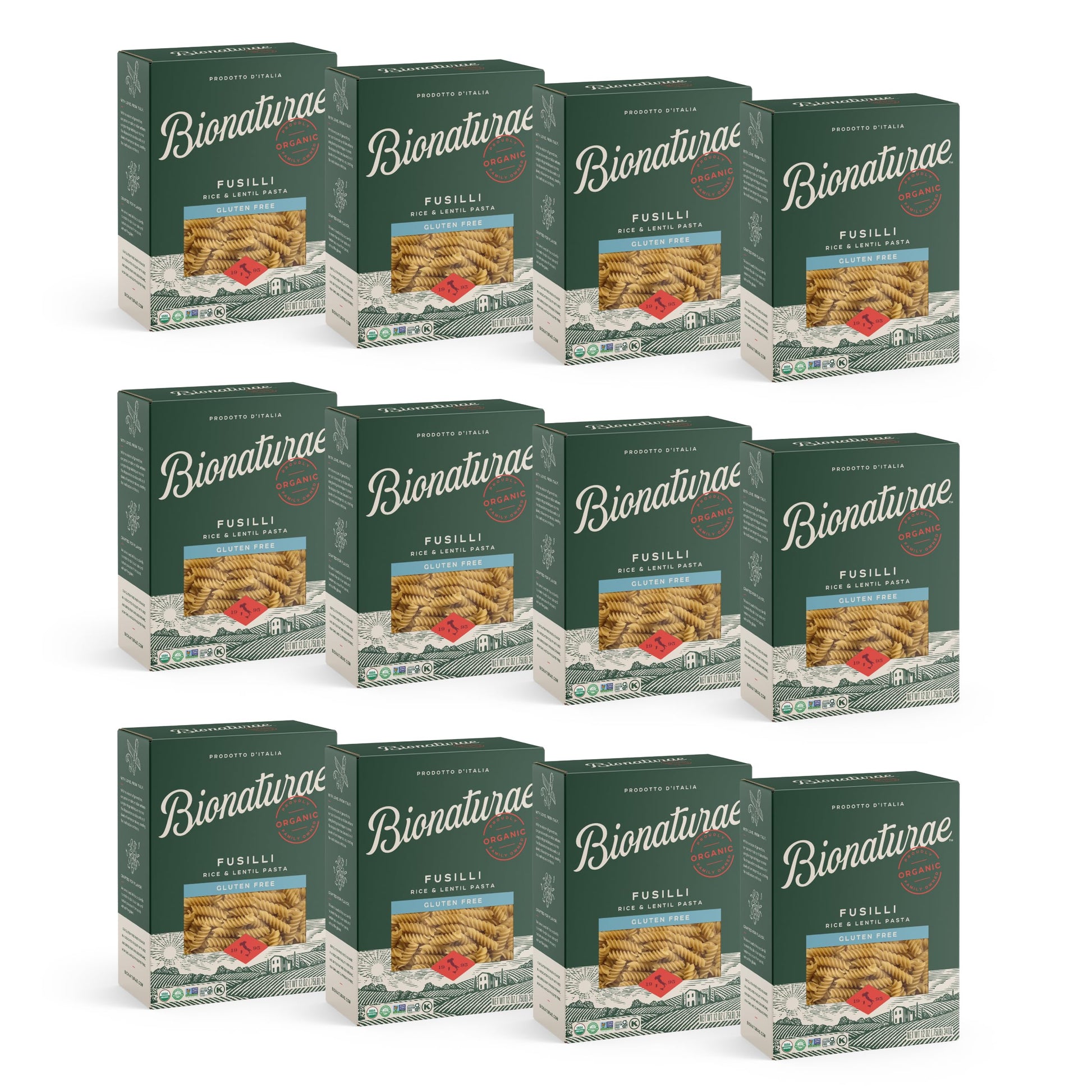 - Q: What are the main ingredients of Bionaturae Fusilli Pasta? A: Bionaturae Fusilli Pasta is made primarily from rice and lentils, making it a gluten-free option. It contains no soy, added starches, or gums.