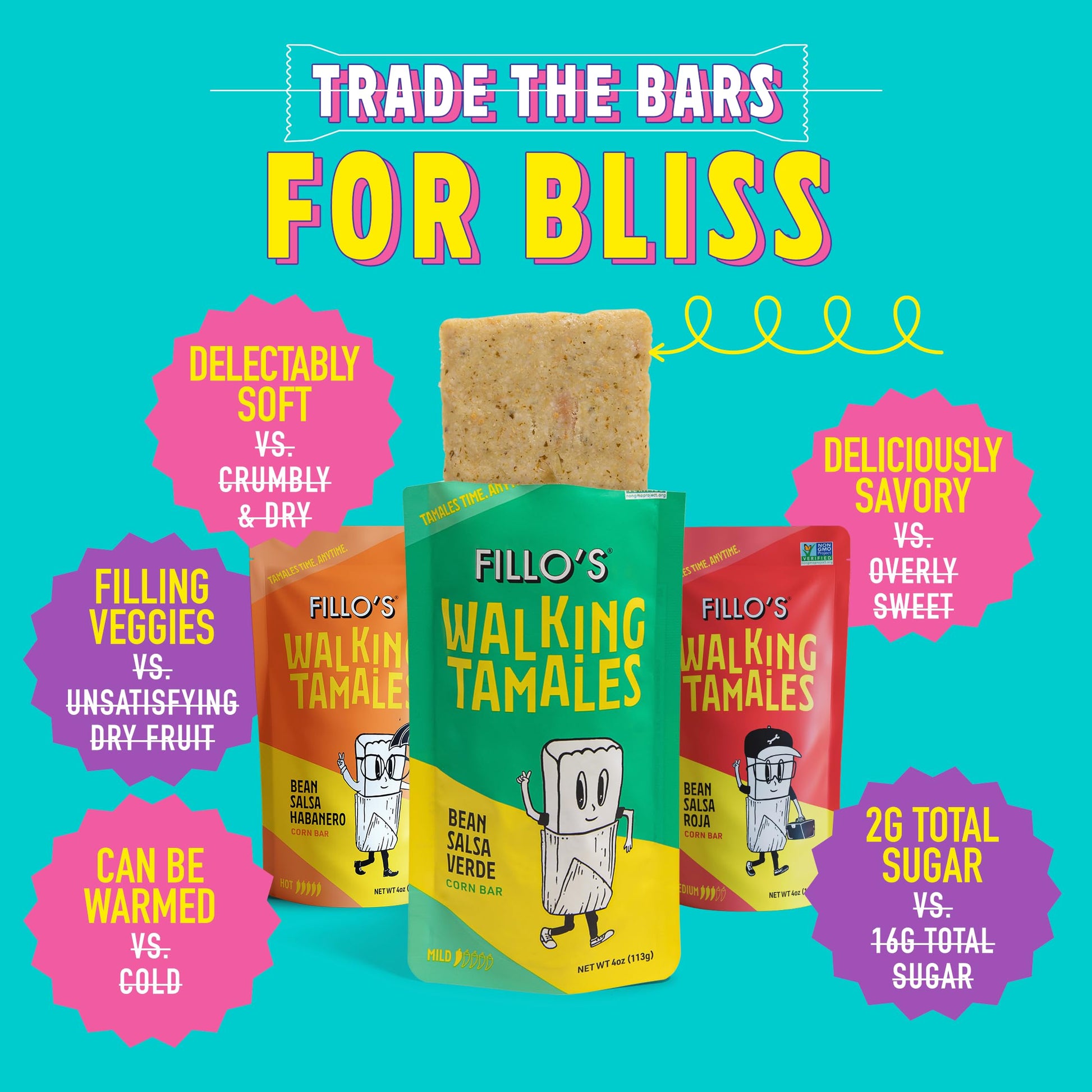 Q: What flavors are included in the Fillo's Walking Tamales variety pack?A: The Fillo's Walking Tamales Savory Variety Pack includes three Salsa Verde, two Salsa Roja, and two Habanero tamales, offering a delightful range of flavors.