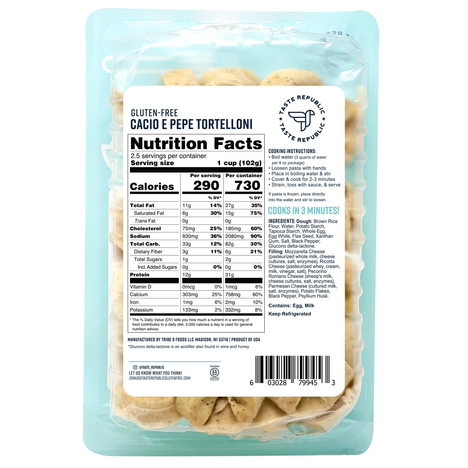 View compareGluten-Free Tortelloni, Cacio e Pepe, Fresh Stuffed Pasta Cooks in Just 3 Minutes by Taste Republic, Frozen, 9oz (6 pack)
