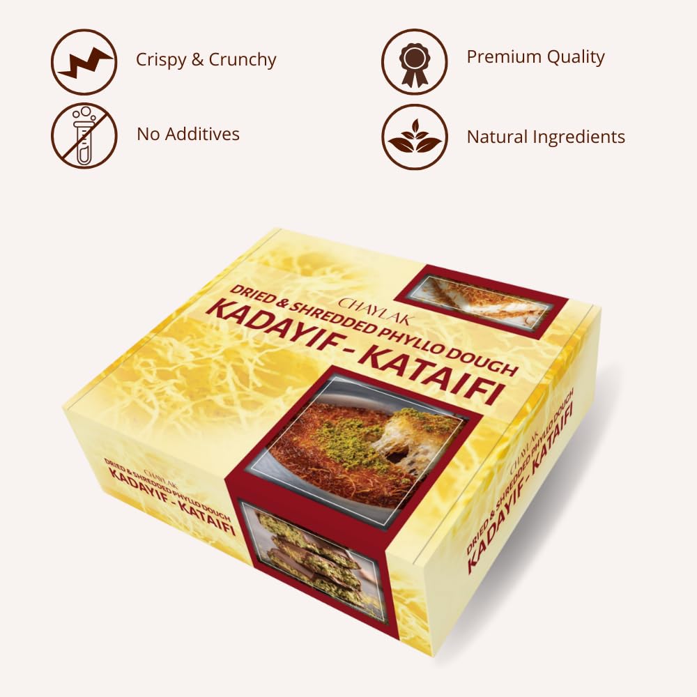 - Q: What is kataifi shredded phyllo dough used for? A: Kataifi shredded phyllo dough is a versatile ingredient used in a variety of culinary creations, particularly in Middle Eastern desserts like knafeh and baklava. It can also be utilized in modern recipes, such as the viral Dubai chocolate bar, allowing for innovative and delicious desserts.