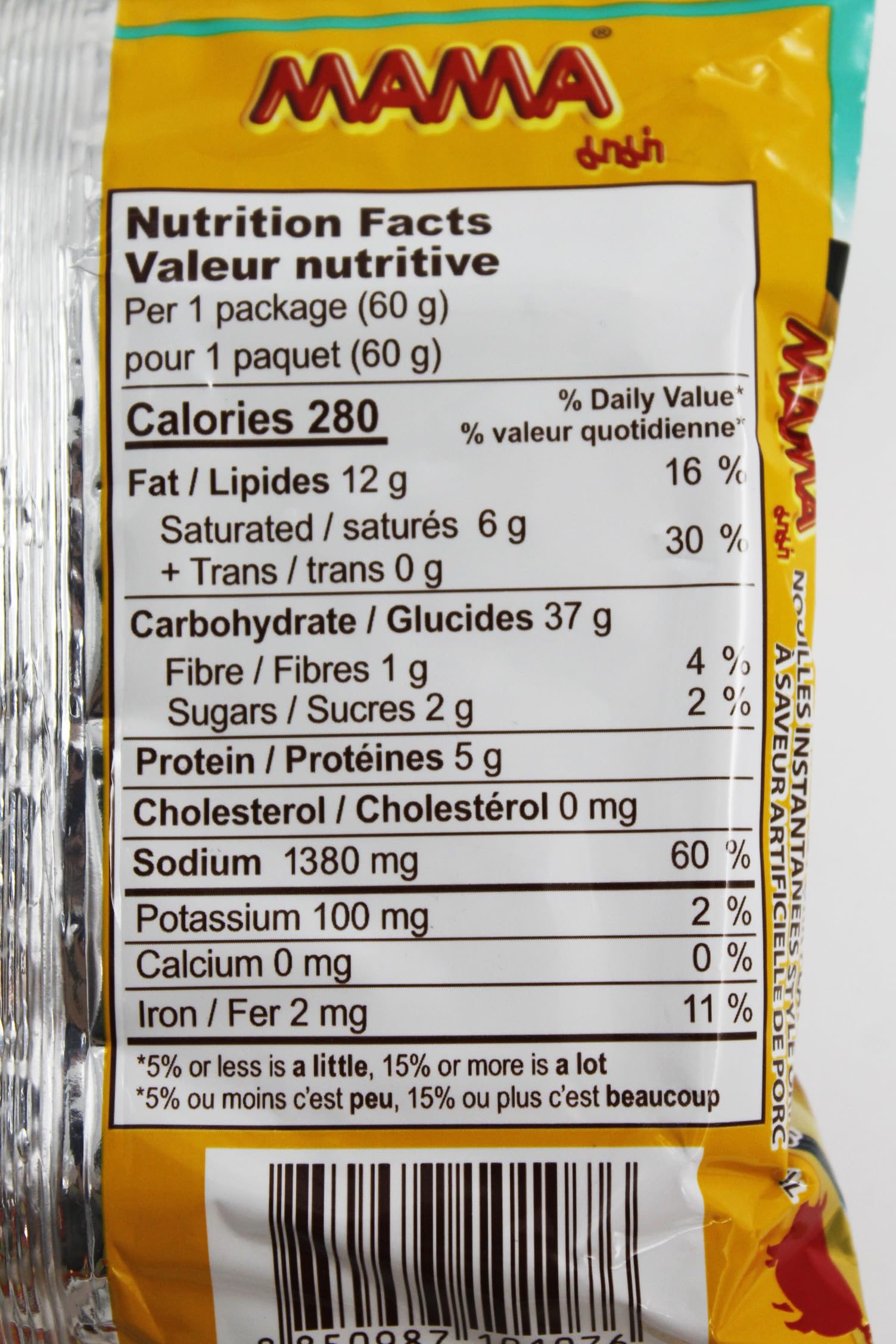 YOUR FAVORITE THAI FLAVOR: enjoy the irresistible hot, spicy and savory Pork flavor of MAMA noodles anytime of the day (or night!) | LIGHT, CHEWY NOODLES IN A CUP: when cooked according to the recommended time, MAMA Asian noodles strike a delicate balance between chewiness and softness - a perfect match with the hot and spicy Pork broth. | FEWER CALORIES THAN DEEP-FRIED INSTANT NOODLES: MAMA Pork instant noodles are air dried via hot air circulation, meaning that they contain fewer calories than their conventional deep fried counterparts. | ZERO TRANS FAT: MAMA Pork Thai noodles dont contain any trans fat, so you can relish them with peace of mind. | SPECIFICATIONS OF MAMA INSTANT NOODLES: 60g per bag; 30 bags in a pack, Pork flavor