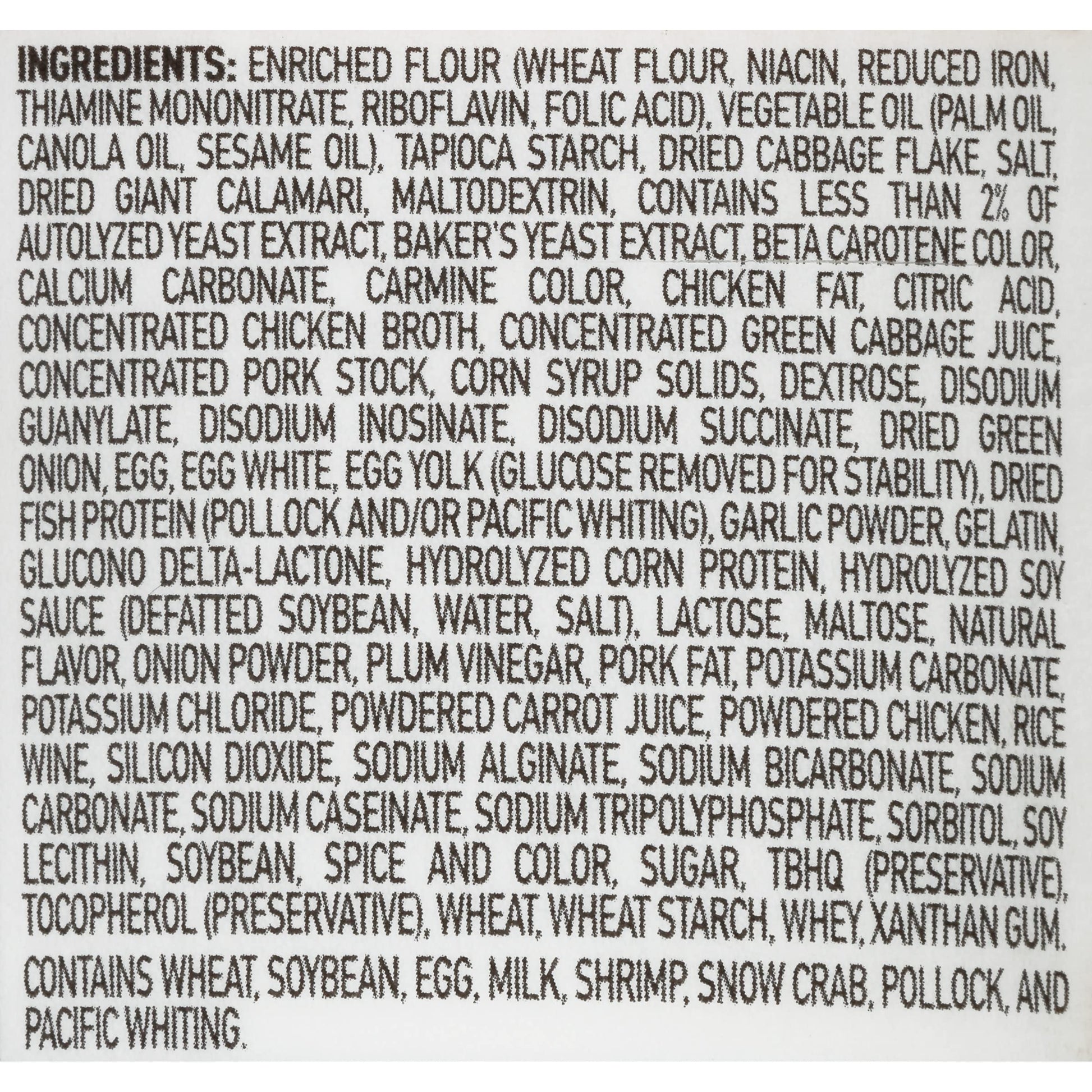 - Q: What ingredients are included in the Seafood Flavor Cup Noodles? A: The Seafood Flavor Cup Noodles include ingredients such as noodles, a creamy seafood soup base, and toppings like calamari, imitation crab, scrambled eggs, and cabbage.
